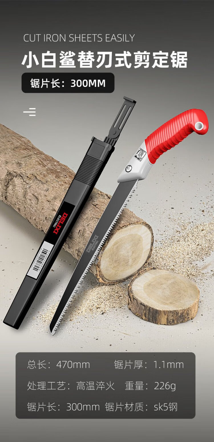 Delixi hand saw manganese steel Japanese SK5 saw hand saw tree artifact household small woodworking logging saw scissors and fixed saws for large trees 440mm Japanese imported medium SK5 steel scissors and fixed saws free special saw set + polishing artifact + protective gloves