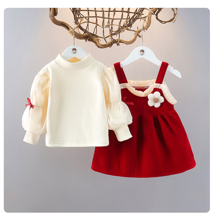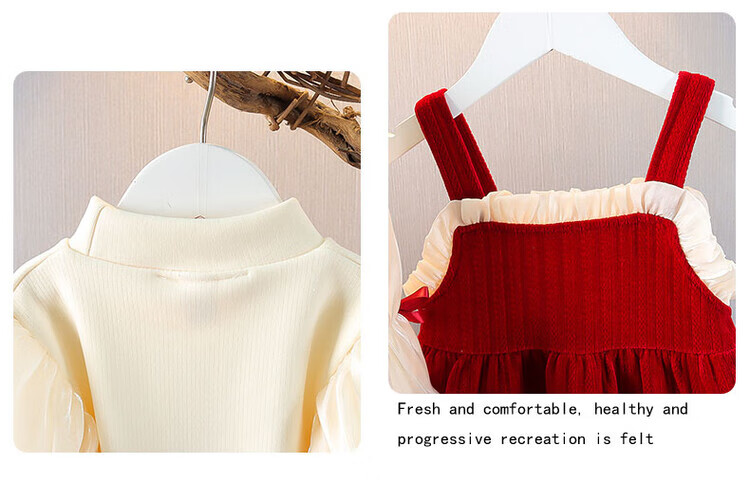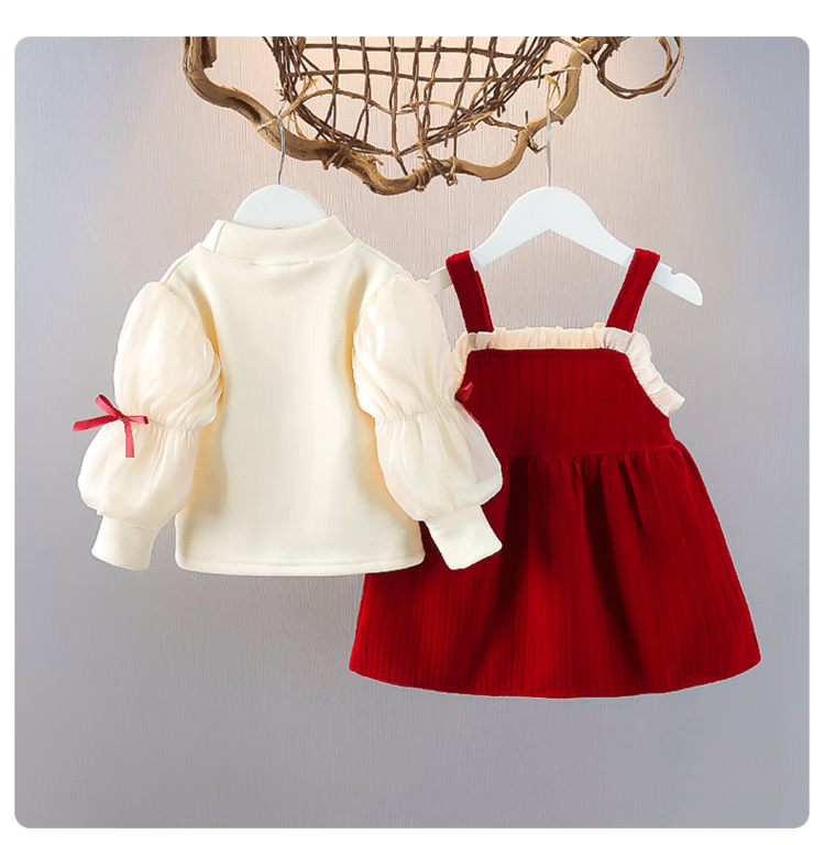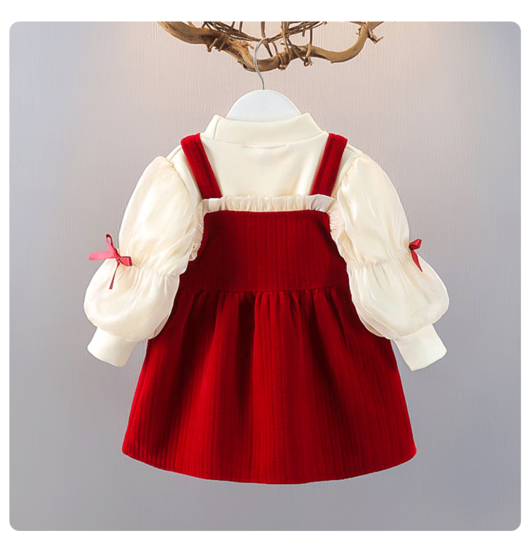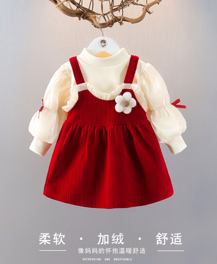 Children's clothing girls suit spring and autumn dress one-year-old baby girl princess dress dress children autumn and winter two-piece set red l plus velvet cm 100