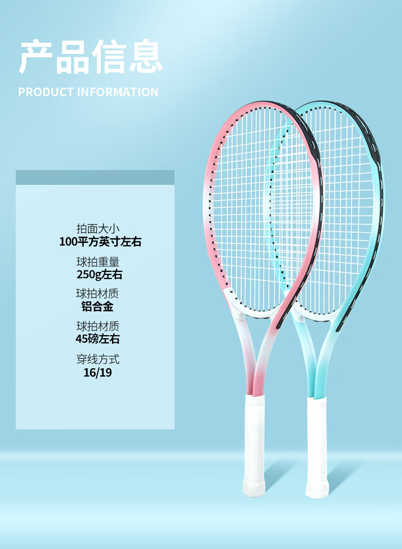 Ultra-light tennis racket and tennis training device for single player with rebound string for adults, children and beginners, one-person self-training tool, 1 sky blue + racket bag