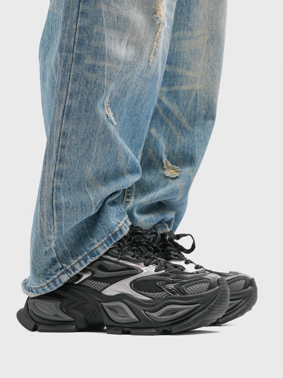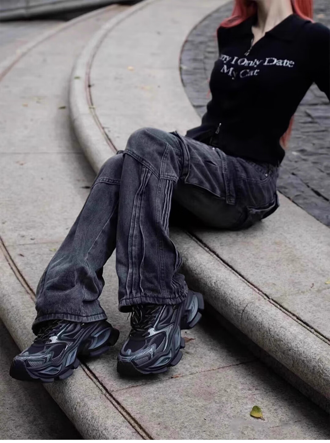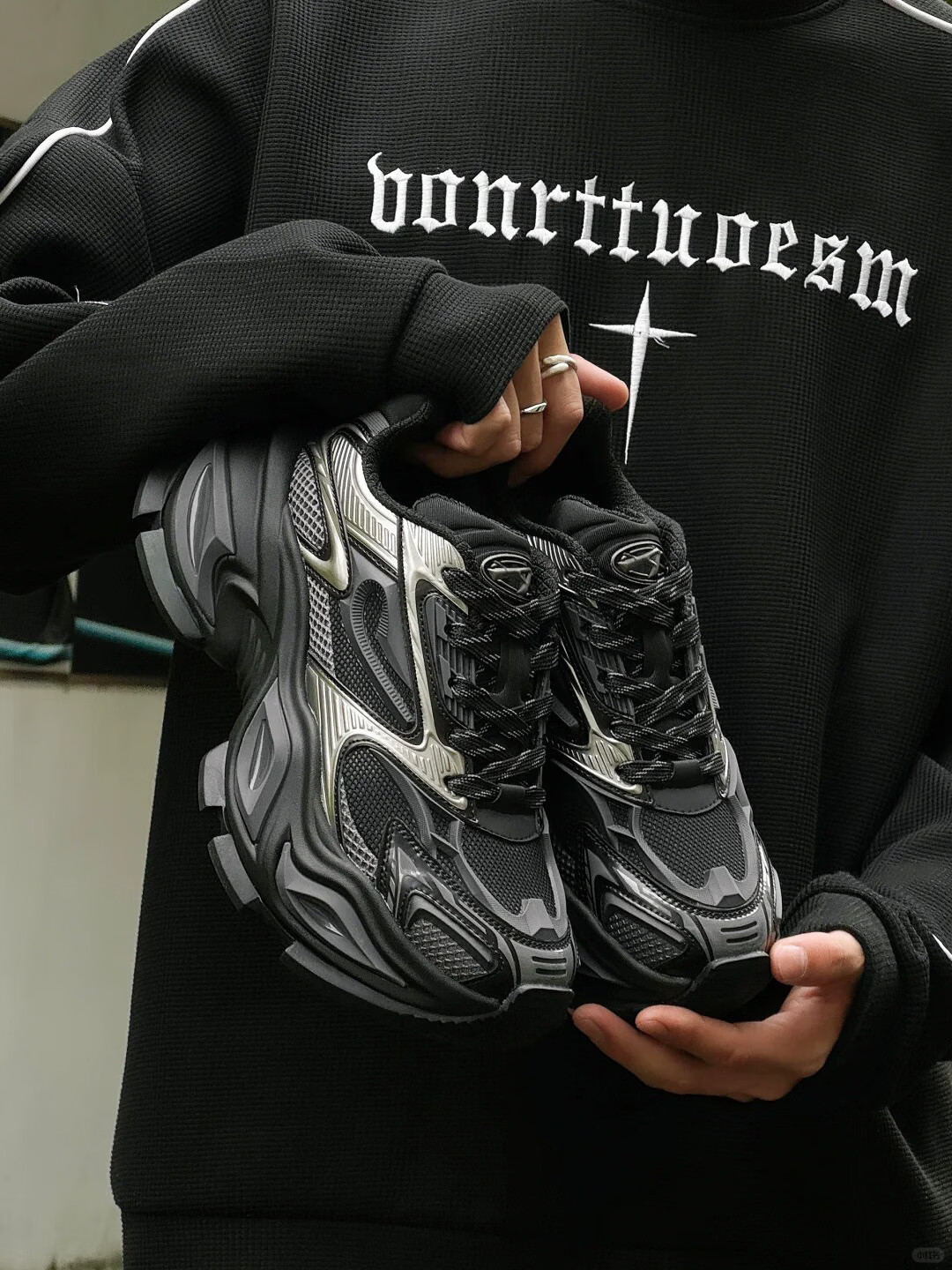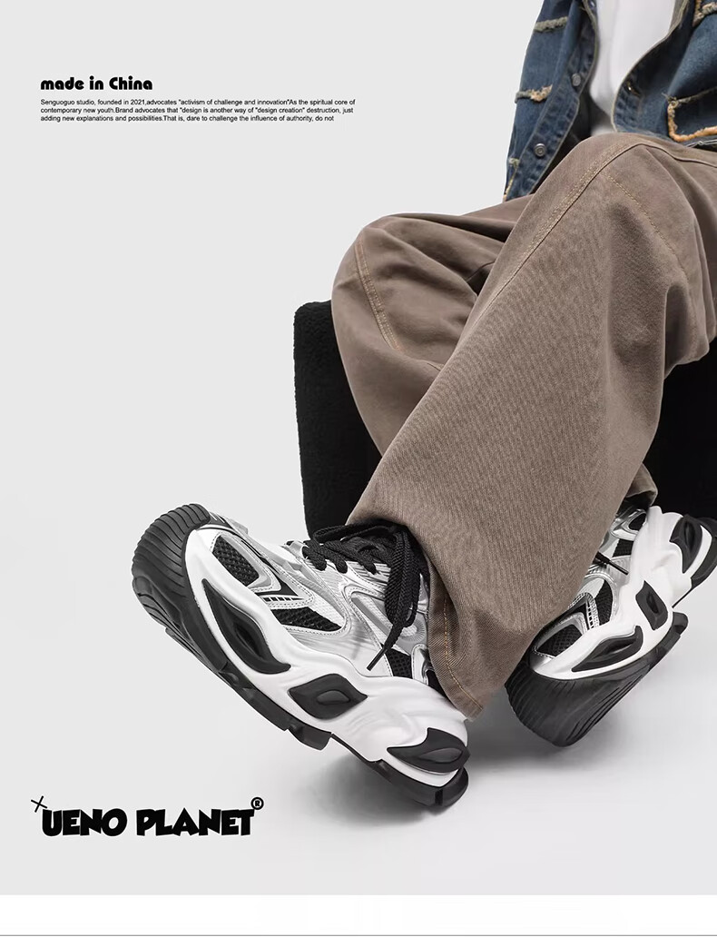 ZLZP daddy shoes for men and women with different pupils, cat-eye shoes for men, 2025 autumn new thick-soled heightening breathable casual sports shoes, black and white panda counter flagship, different pupils 42