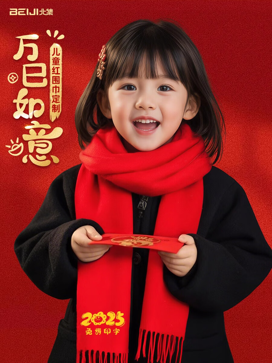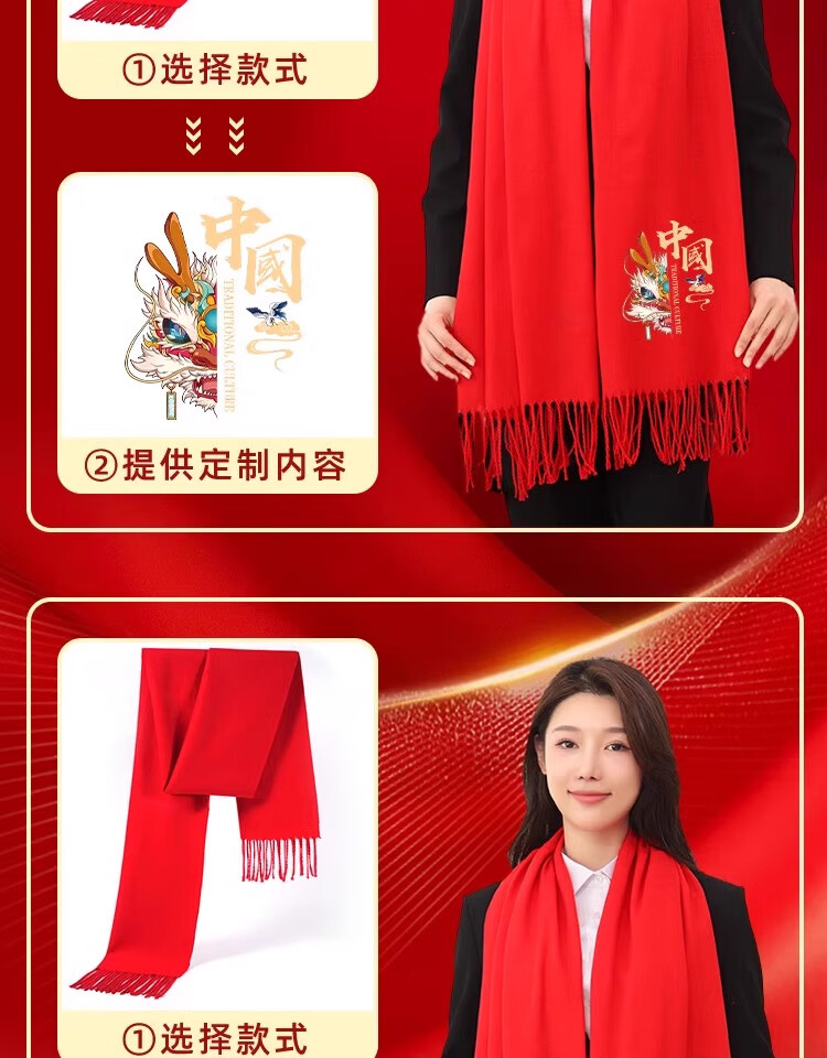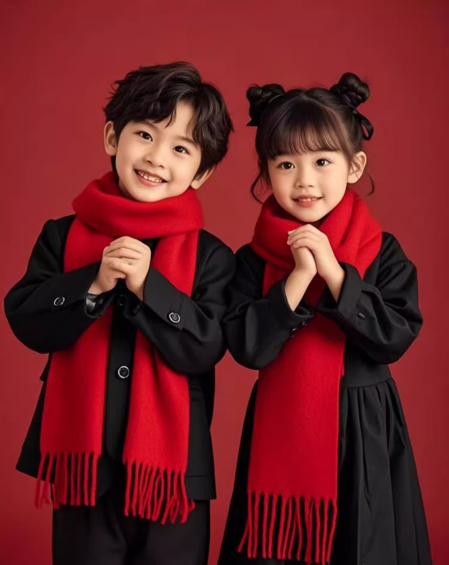 Reprinted children's red scarf, custom logo printing and embroidery, school annual party performance event props, New Year greetings, big red shawl, children's WY-thickened small twill scarf