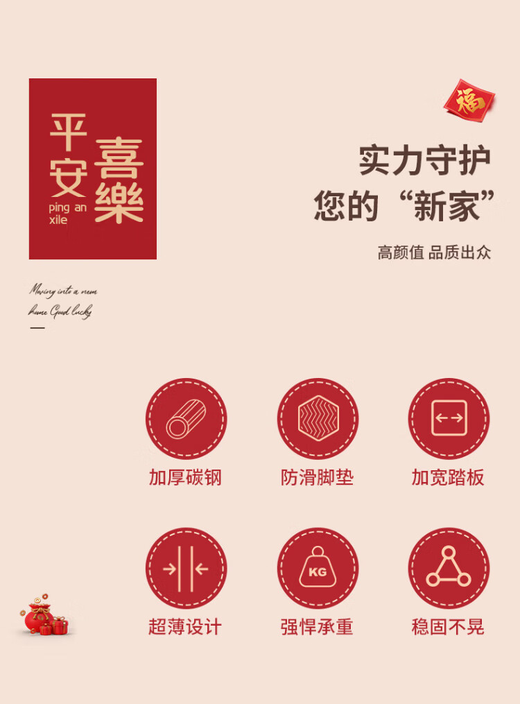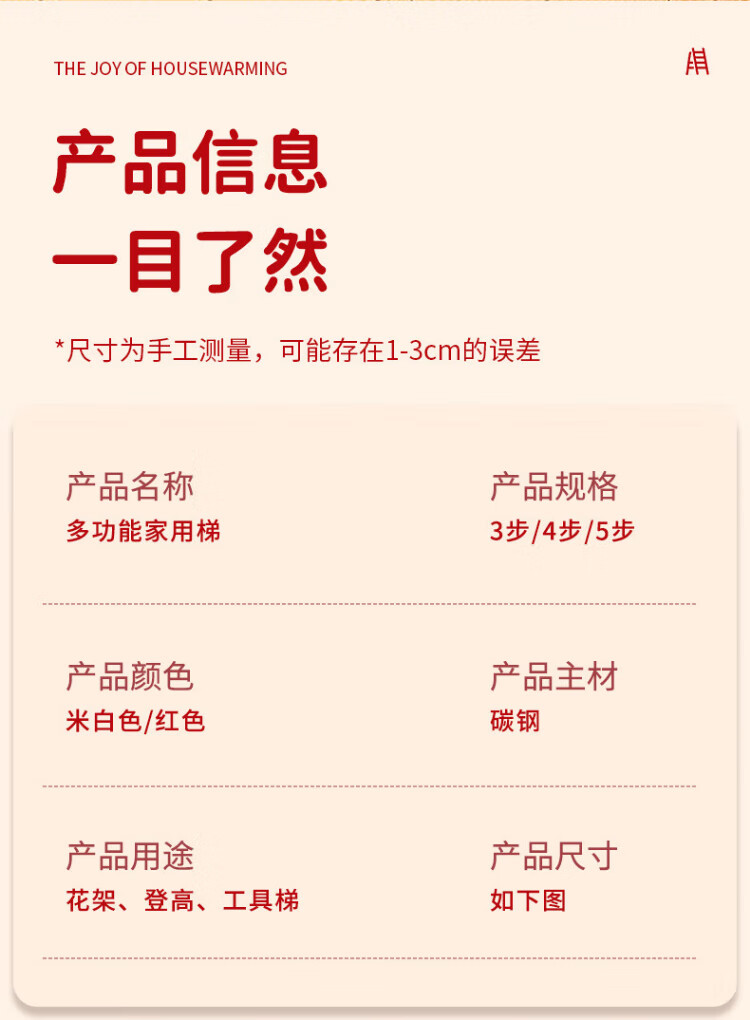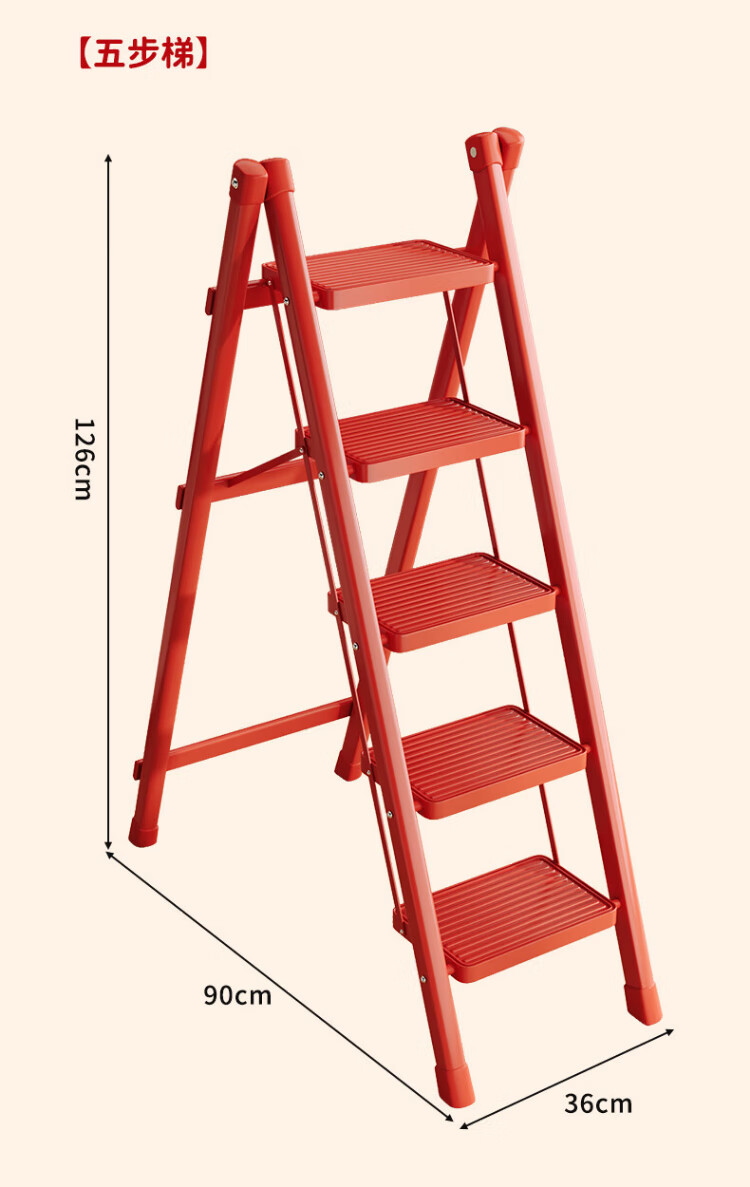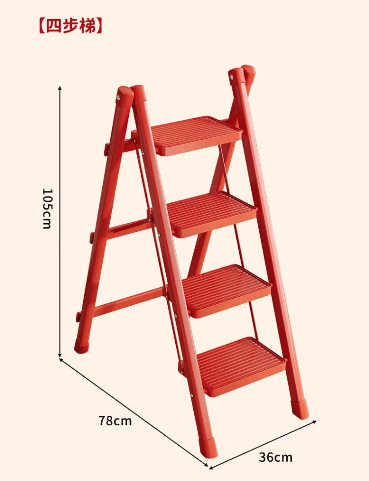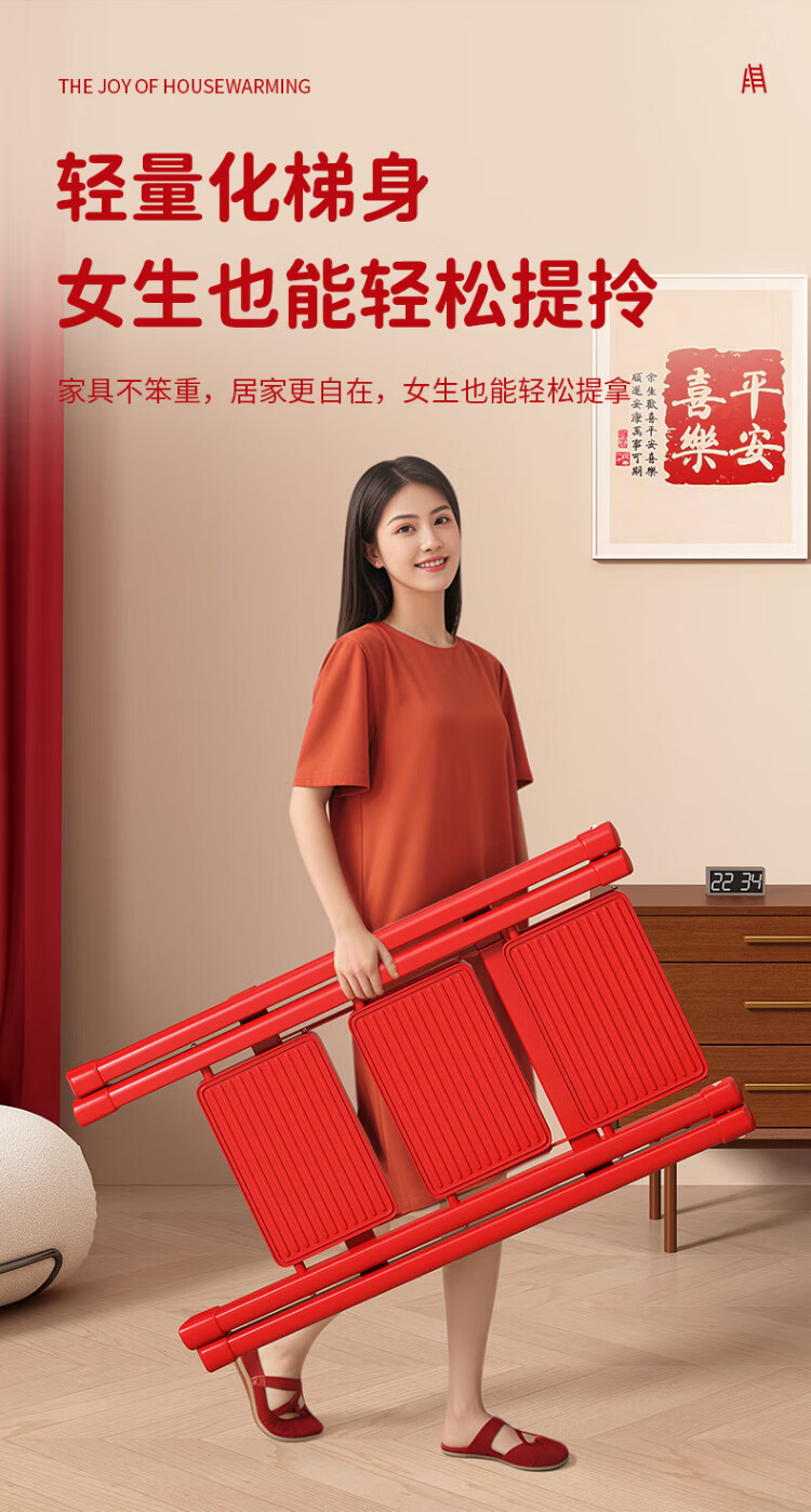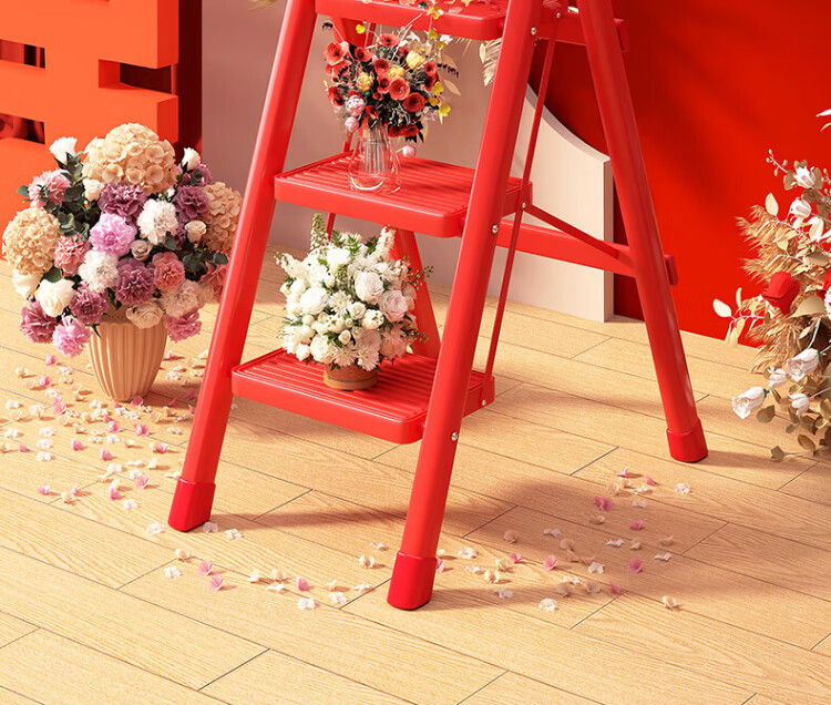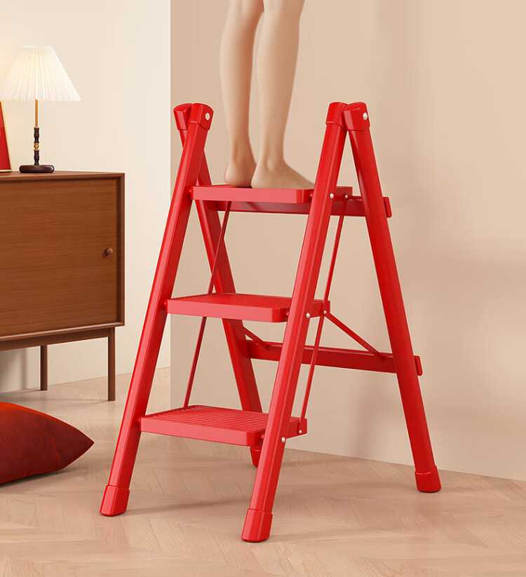 Xinxing Zhidian Ladder Household Ladder Herringbone Ladder Folding Ladder Housewarming Ladder Carbon Steel Step Ladder Engineering Ladder Climbing Ladder Indoor Dual-purpose Ladder Geely Red-Three-step Ladder Hot-Selling Model