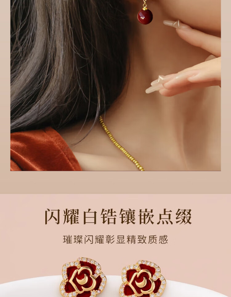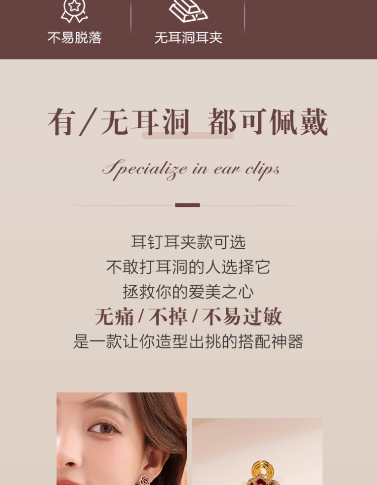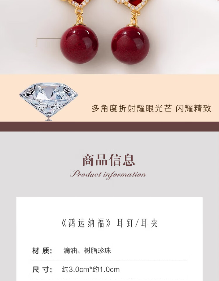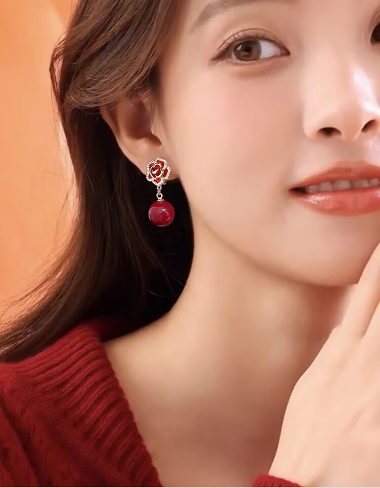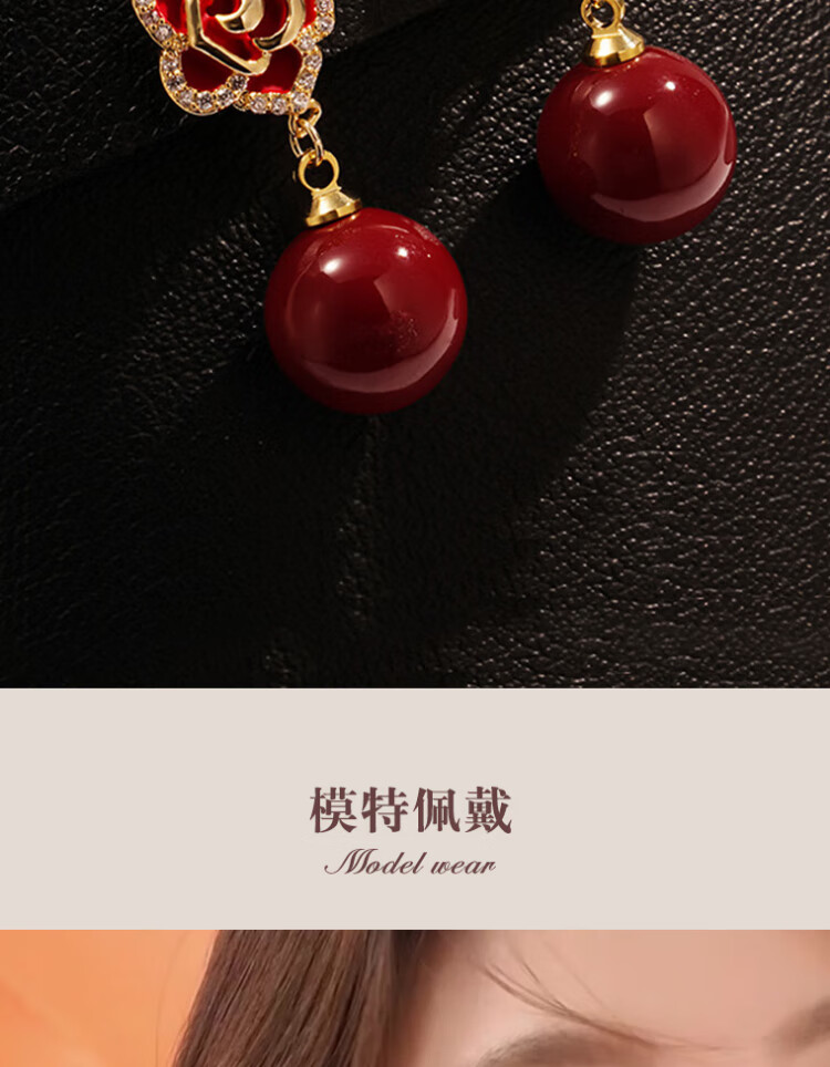 Core luxury red imitation pearl earrings, ear clips without piercing, women's small fragrance autumn and winter earrings, earrings, New Year festive commemorative earrings, a pair of ear clips (can be worn without piercing)