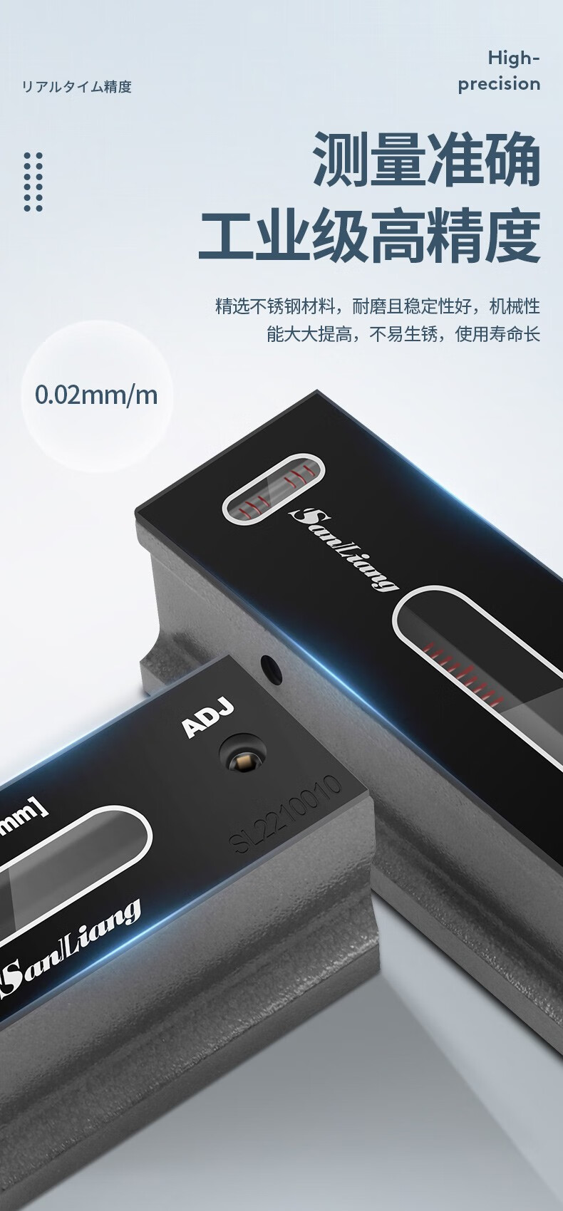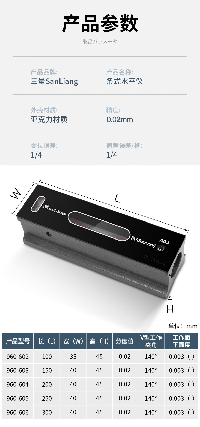 Sanliang high-precision bar level industrial fitter machine tool level bubble 0--150 frame type 300mm0.02V groove