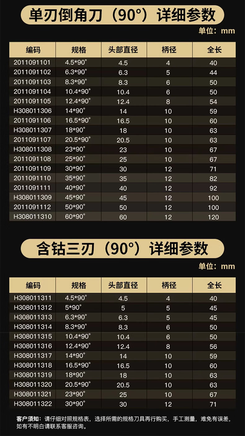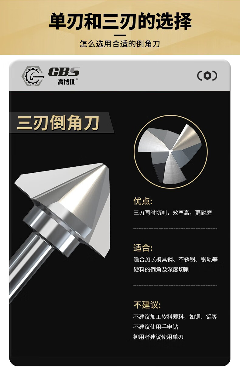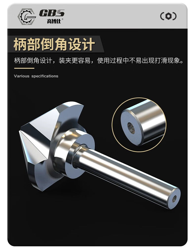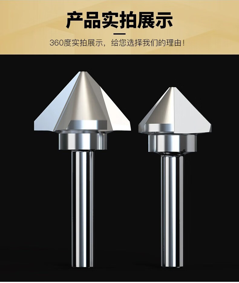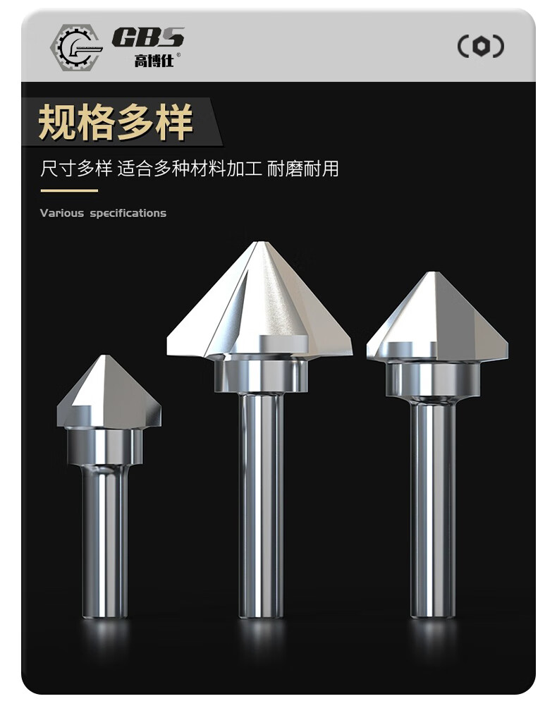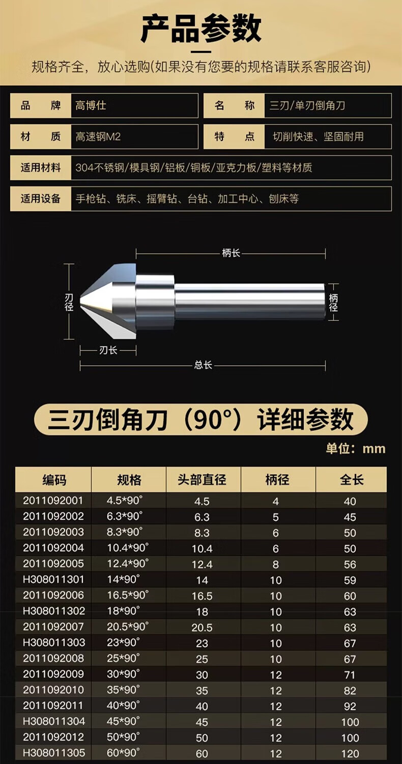 Gobos chamfering cutter countersunk drill bit 90-degree three-edged milling machine bench drill round shank cobalt-plated titanium stainless steel expansion hole deburring milling machine hardened three-edged 6.3*90 degrees-shank 5