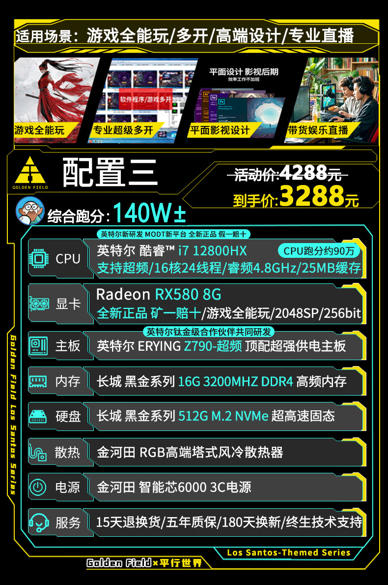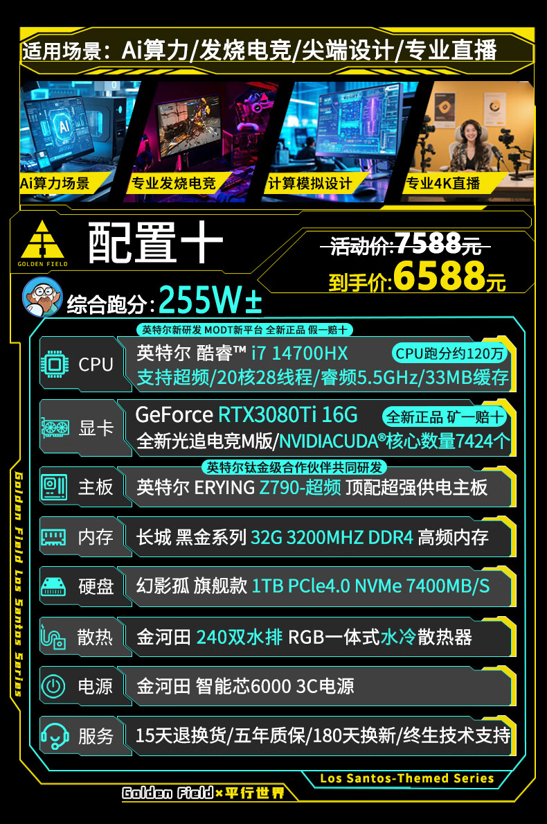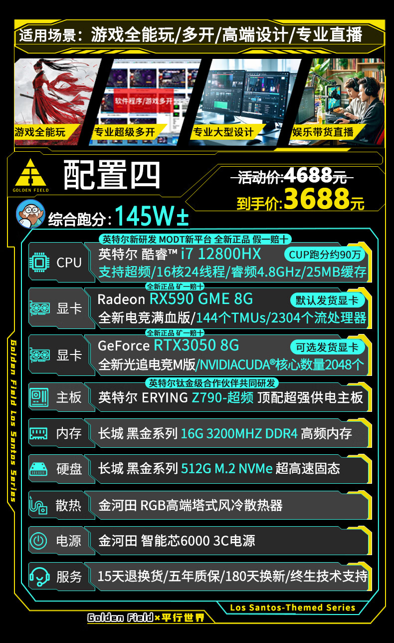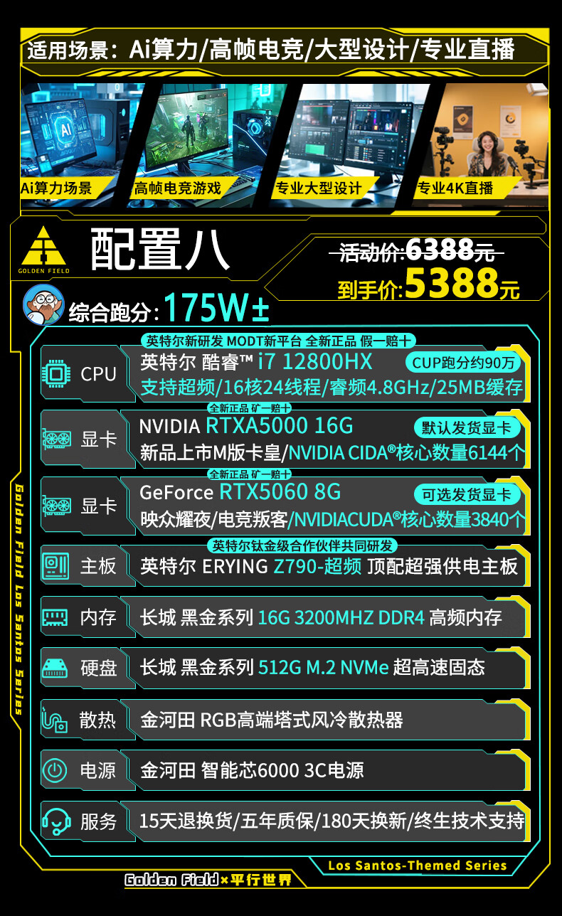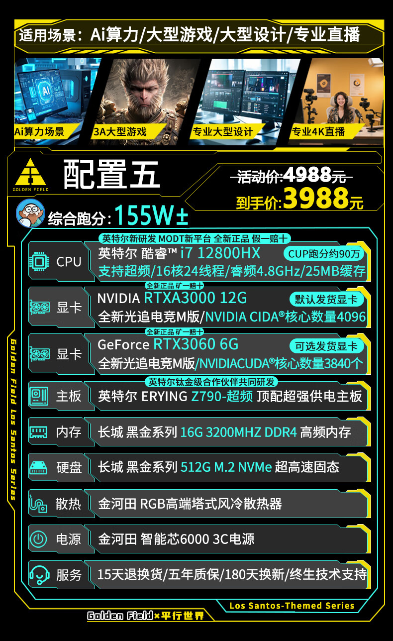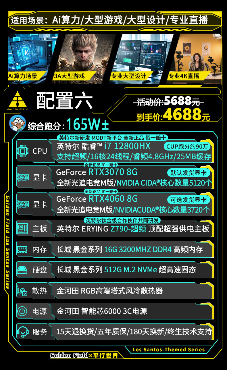 Jinhetian/Intel 20-core overclocked 14th generation Core i7 14700/i7 12800HX+RTX5060/5050/RTX4070/4060 independent display desktop computer e-sports host configuration six | 16-core overclocked 12th generation Core i7+RTX4060 computer host | five-year warranty E-Sports丨Live Broadcasting丨Design丨AI Computing Power