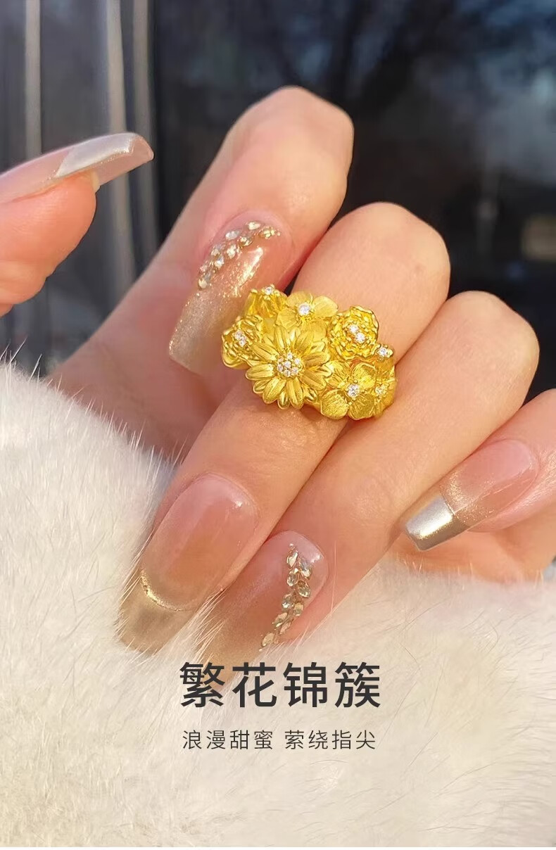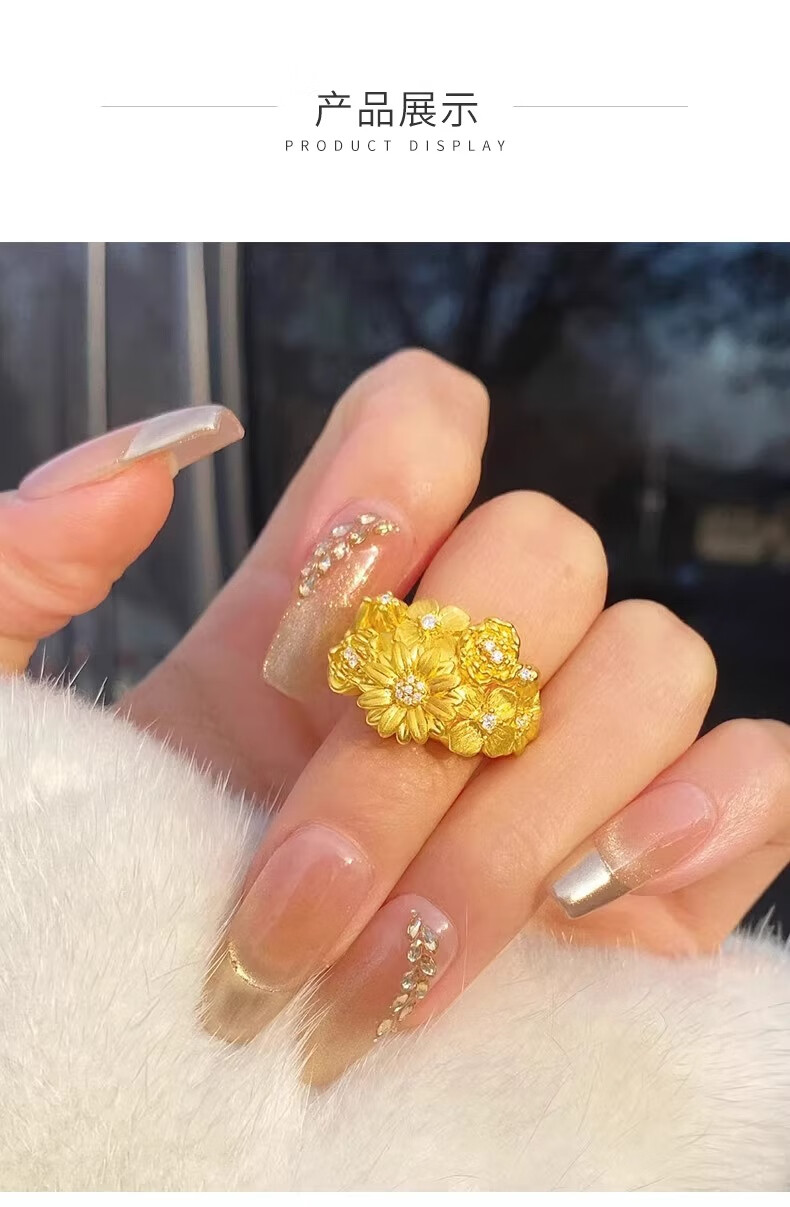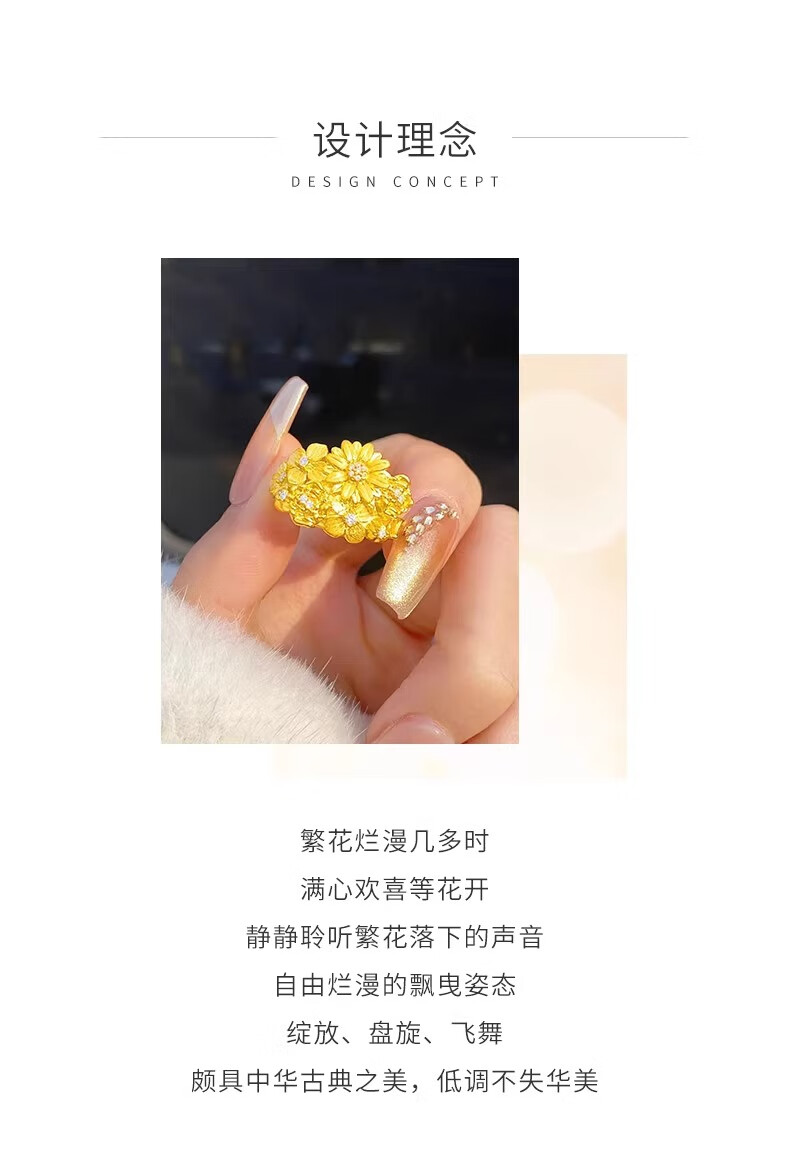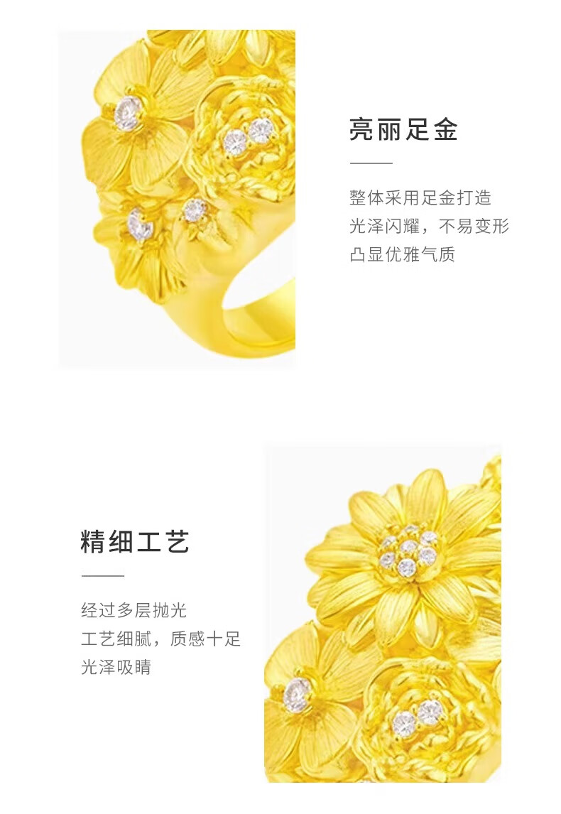 China Gold (CHINA GOLD) pure gold flower daisy ring dotted with diamonds and plain ring finger Valentine's Day birthday gift for girlfriend and wife Flower gold ring 14 rings about 2.4g