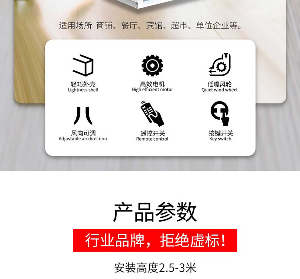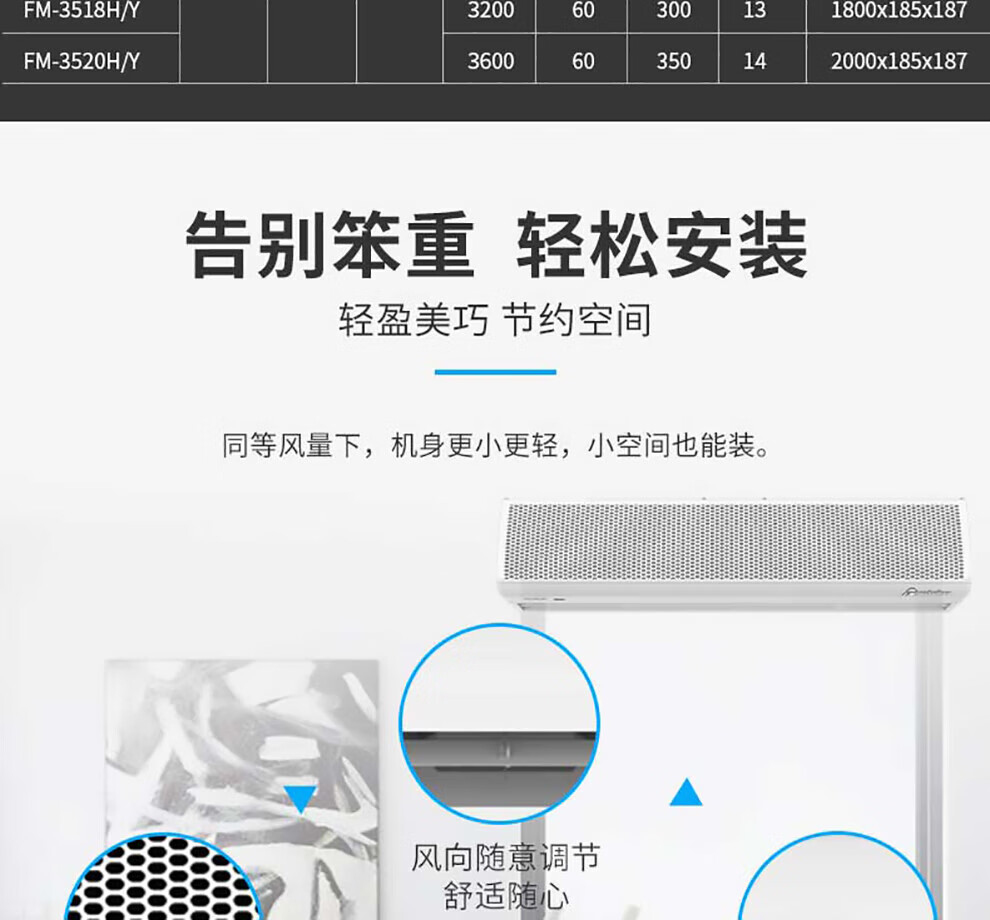 Theodore Industrial and American style low-noise air curtain machine door head air curtain machine commercial air curtain remote control model large air volume 1.2 meters button model/FM-3512H 2 meters remote control model/FM-3520H/Y
