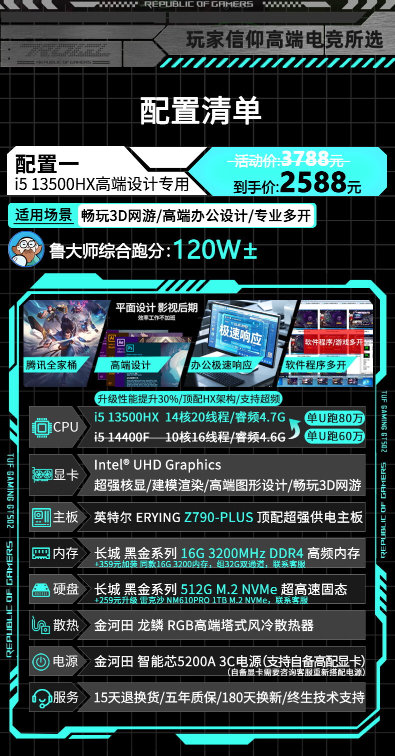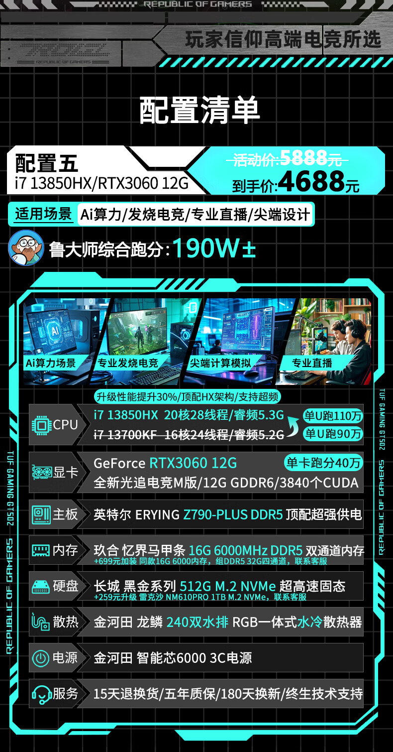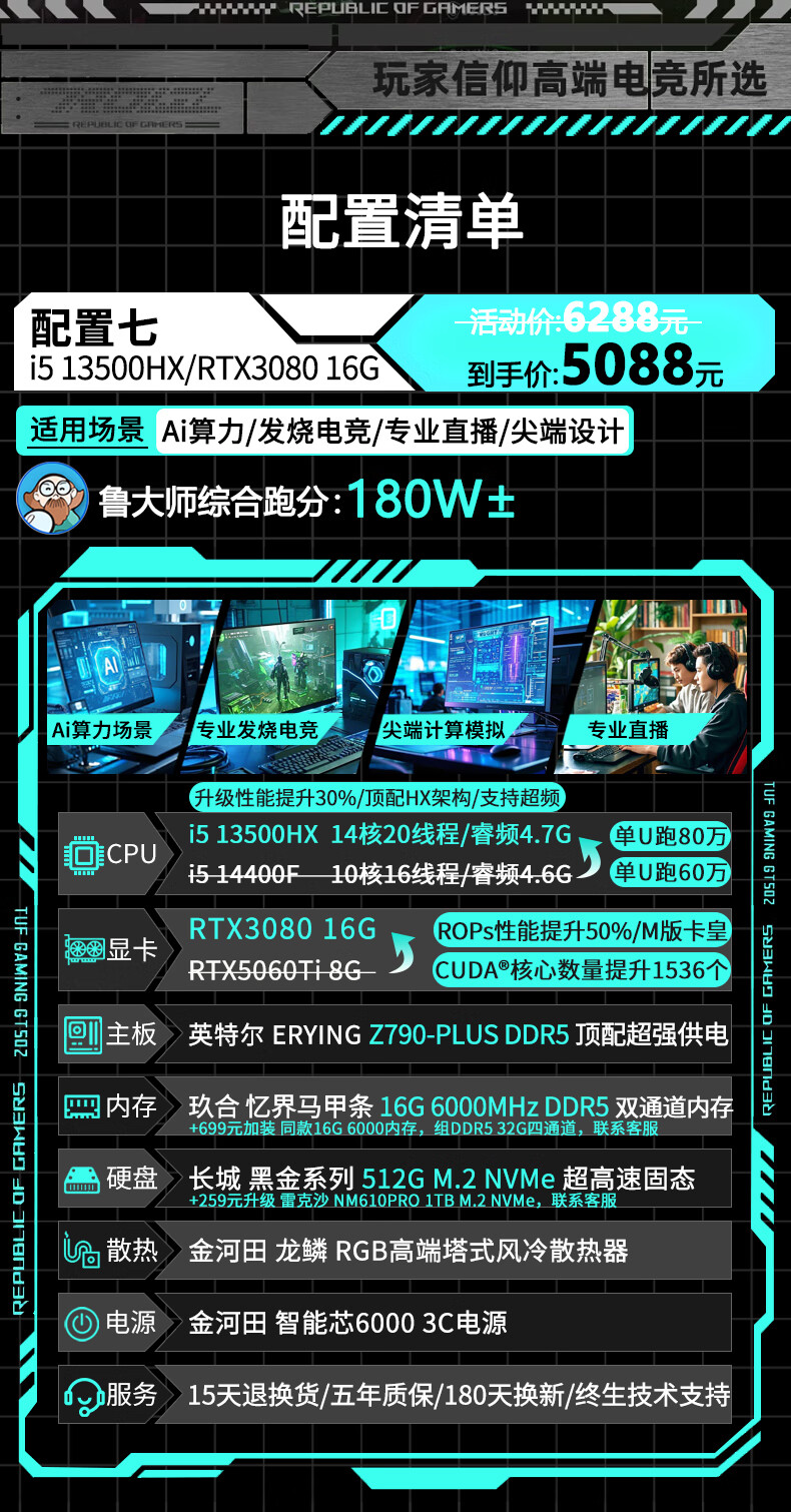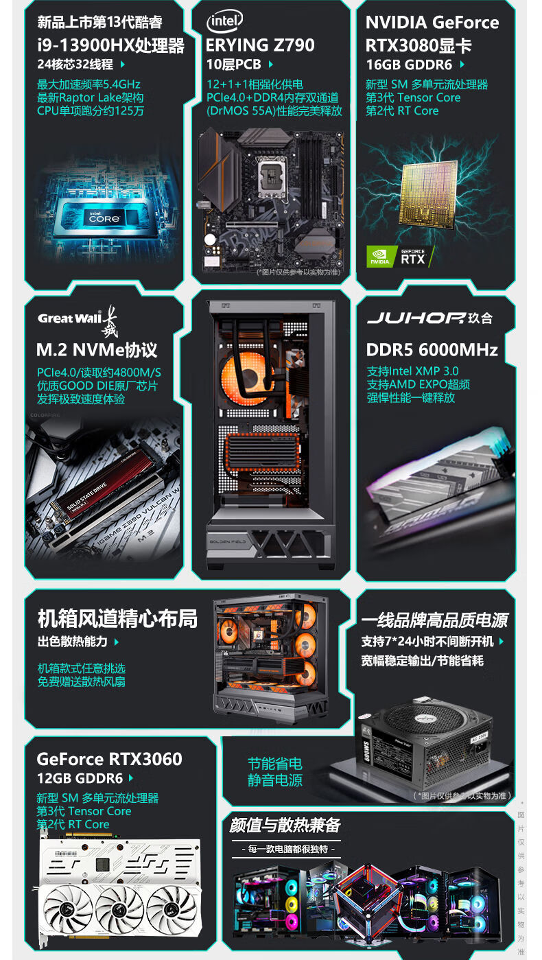 Jinhetian RTX3080 16G/3060 independent graphics desktop computer Intel 13th generation i9 13900 overclocked 24-core 32-thread DDR5 host assembly complete machine gaming office home use four i5 13500HX+RTX3060 12G DDR5 memory+13th generation new product launch/processor supports overclocking