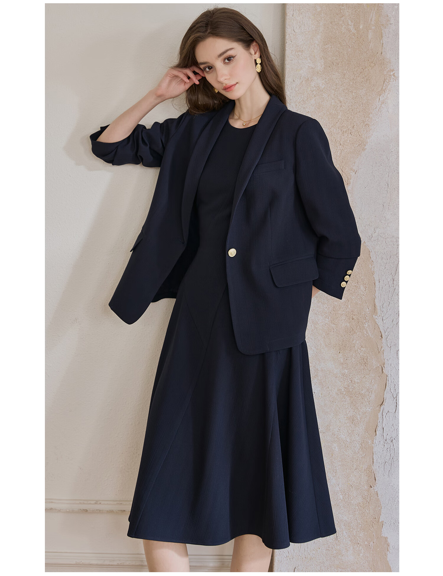 ROEYSHOUSE Luo Yi Senior Professional Suit Jacket Spring Fashion Navy Blue Commuting Slim Suit 11694 Navy Blue S
