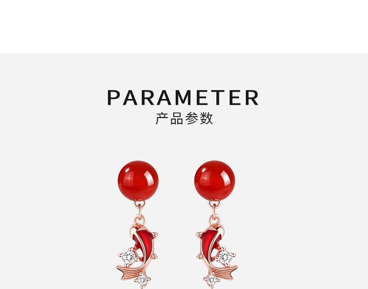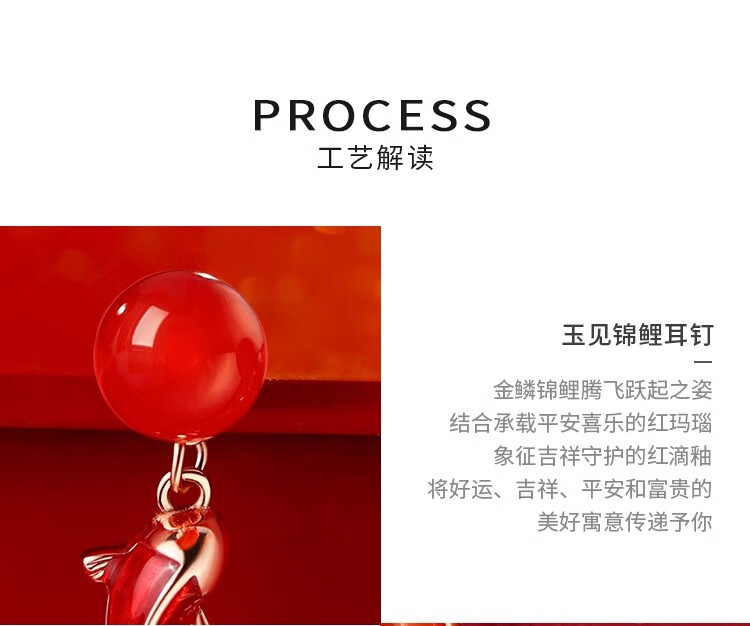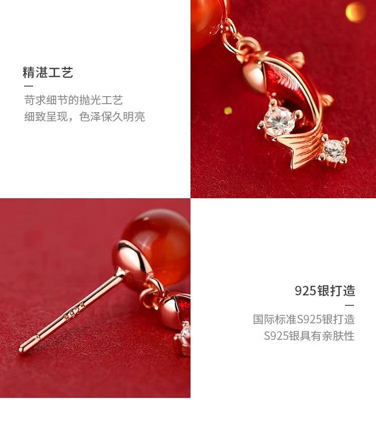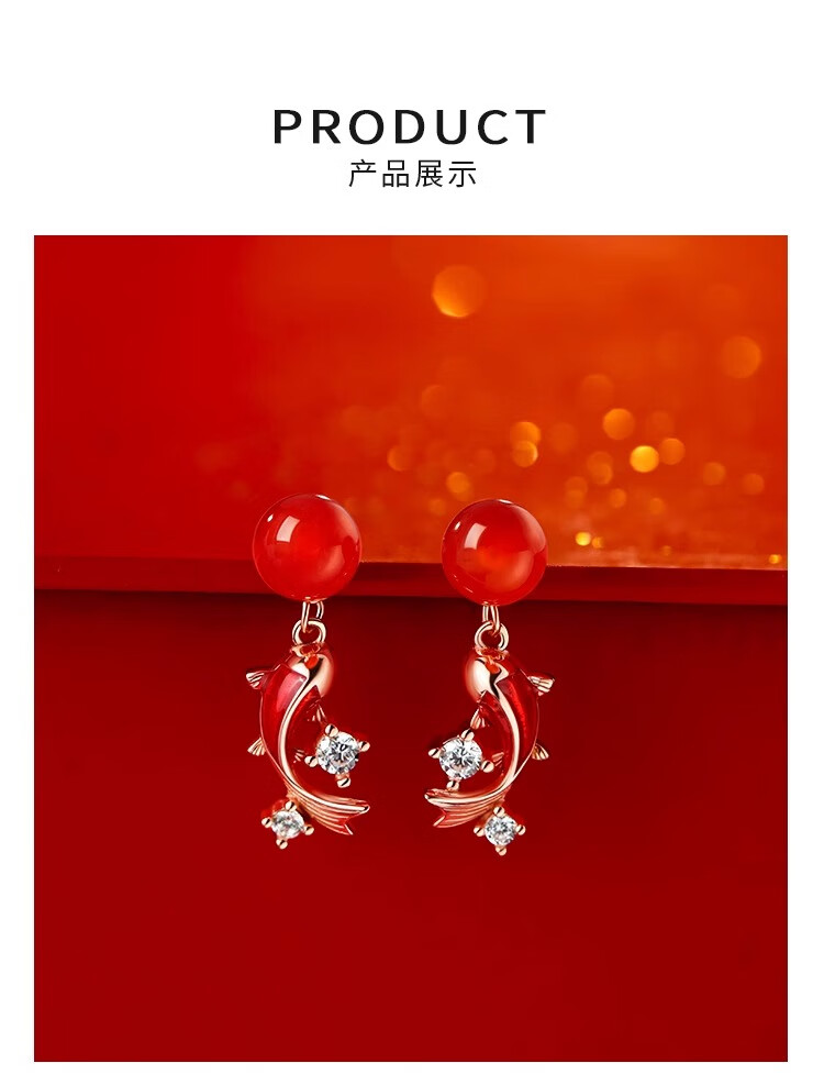 Lao Fengxiang Red Agate Jade See Koi Earrings for Women’s Year of the Year New Earrings Teacher’s Day Birthday Gift for Girlfriend and Wife Delivery Today/Tomorrow* Meet Koi Earrings-Rose Gold Brand Gift Box