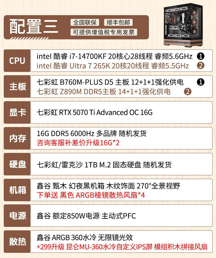 Colorful RTX 5090D 5080 5070 Ti graphics card desktop assembly computer host 265K 14700KF AI designed e-sports game DIY complete machine Configuration 2 RTX 5070 host 265K core display + Colorful Z890M motherboard
