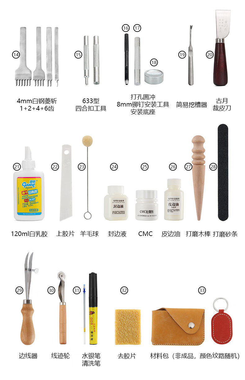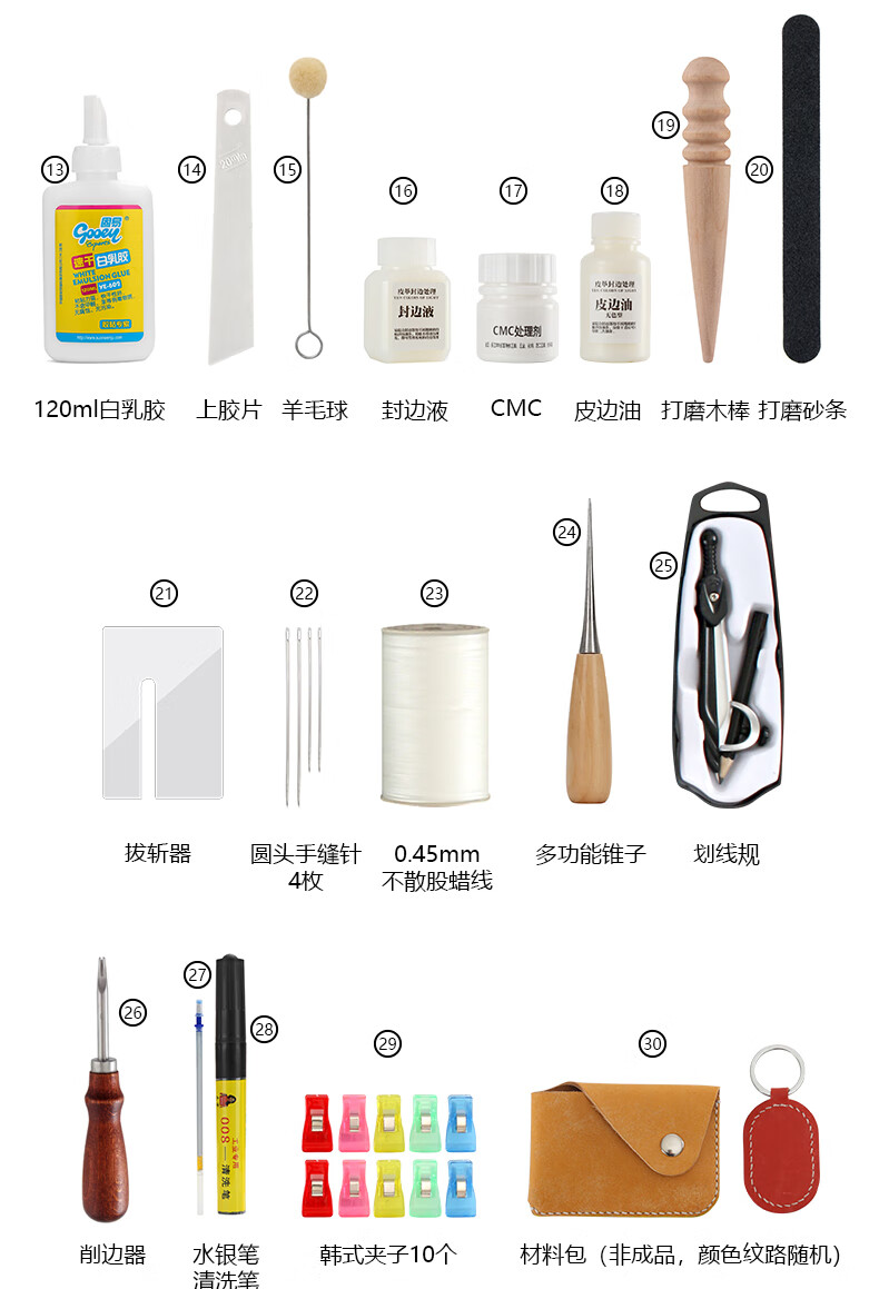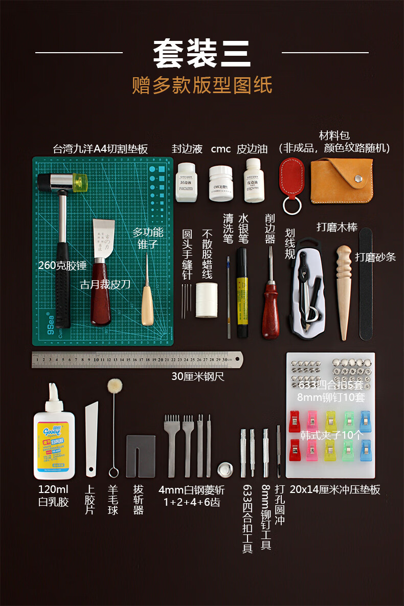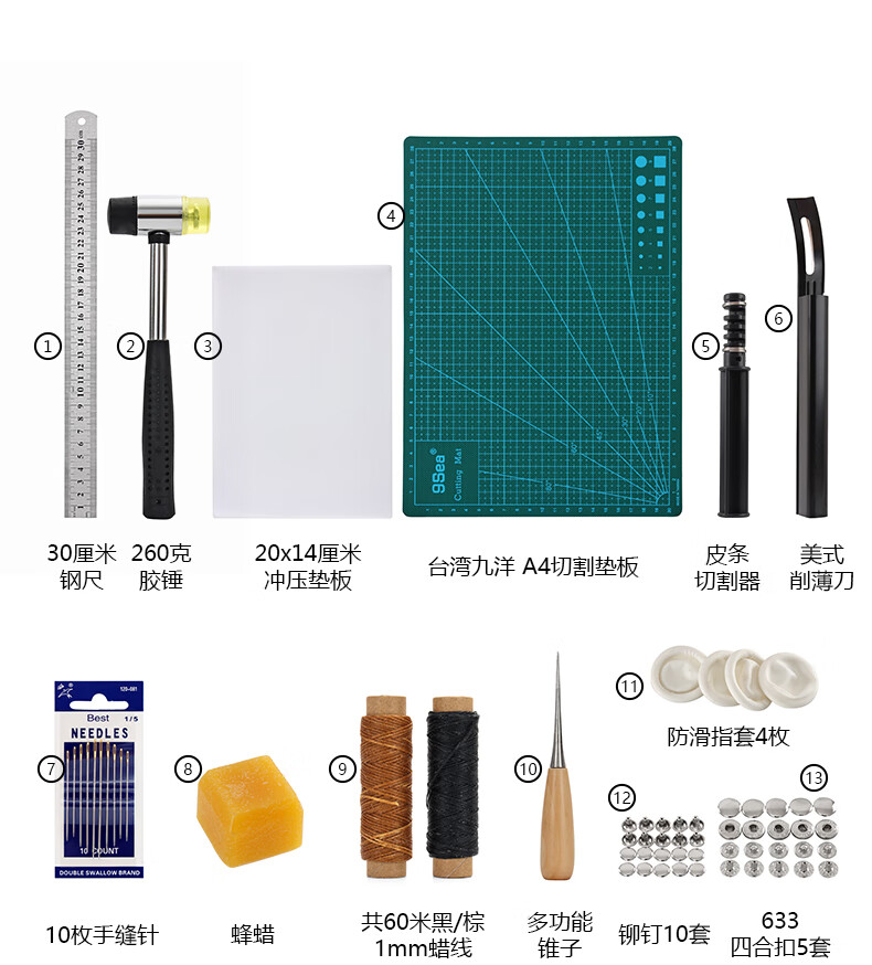 Ao Yan Lai Leather DIY handmade leather goods hand sewing set leather basic tools for making bags by yourself, punching and cutting wax thread, set one, free 200 grams of shredded leather