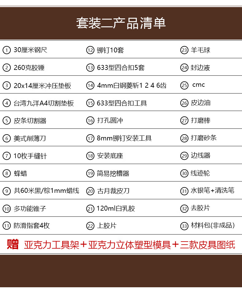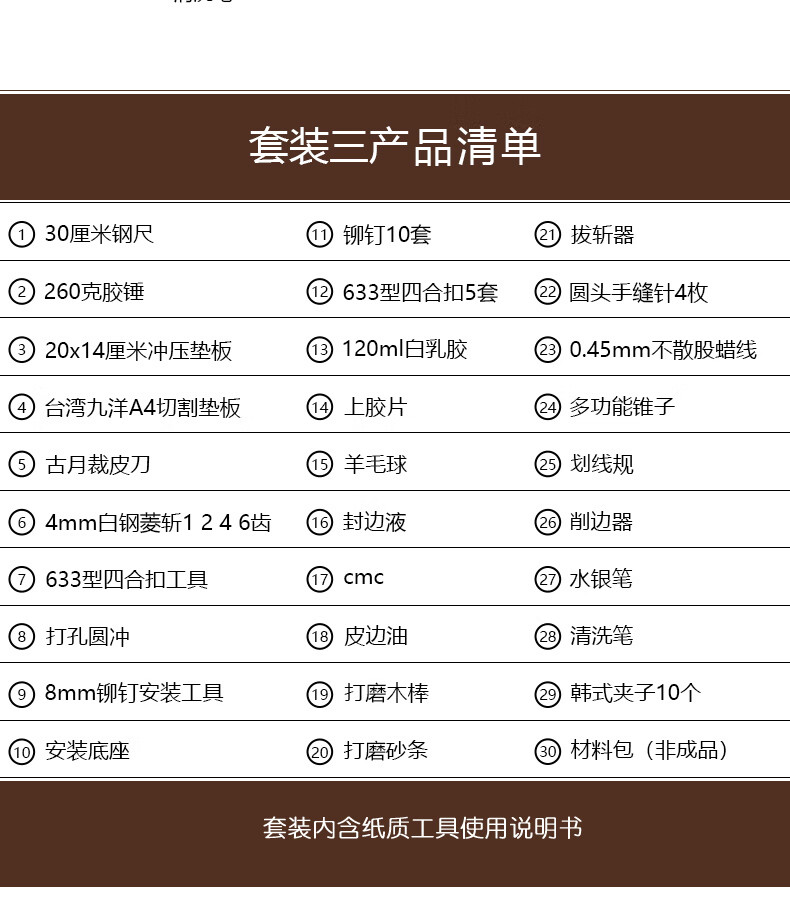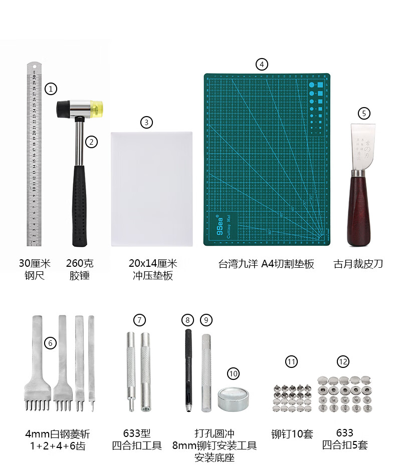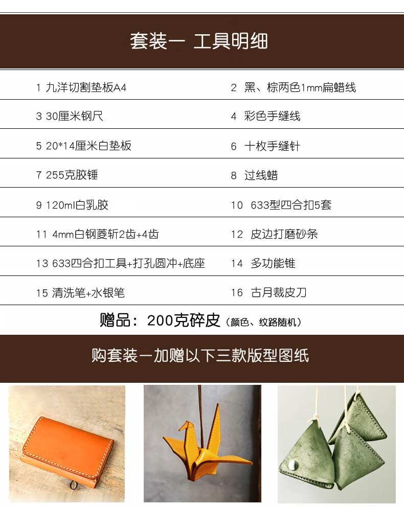 Ao Yan Lai Leather DIY handmade leather goods hand sewing set leather basic tools for making bags by yourself, punching and cutting wax thread, set one, free 200 grams of shredded leather