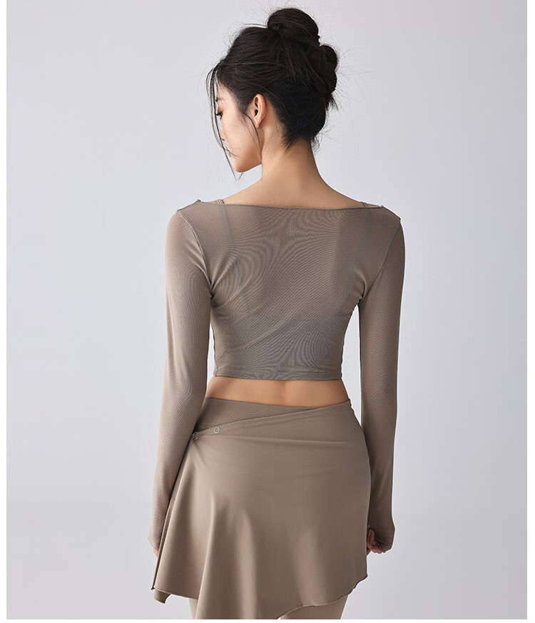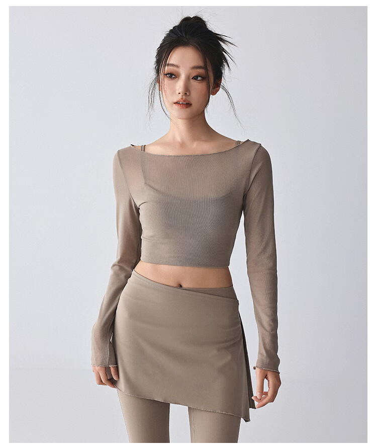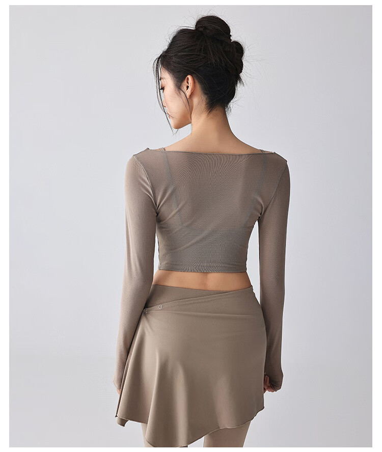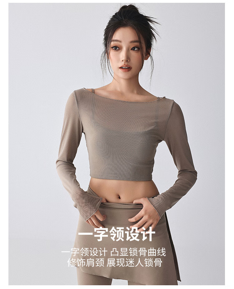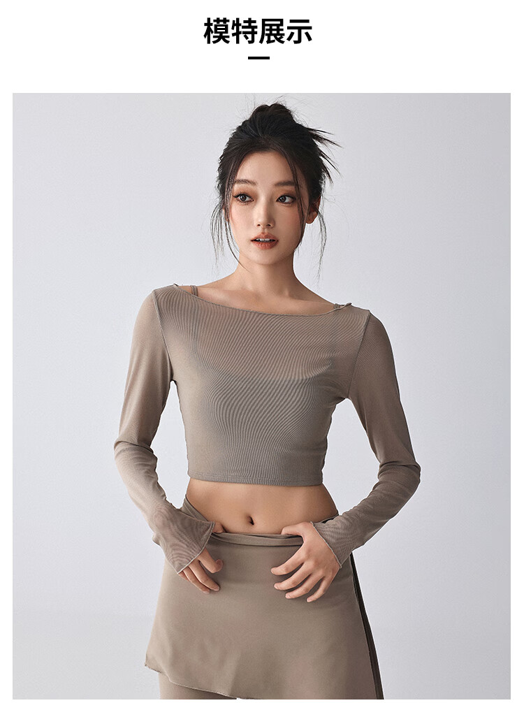 Yoga Girl Fake Two-piece Yoga Wear Long Sleeves with Padded Mesh Quick-Drying Pilates Fitness Wear Sports Top Almond M (95-115Jin Jin equals 0.5kg)