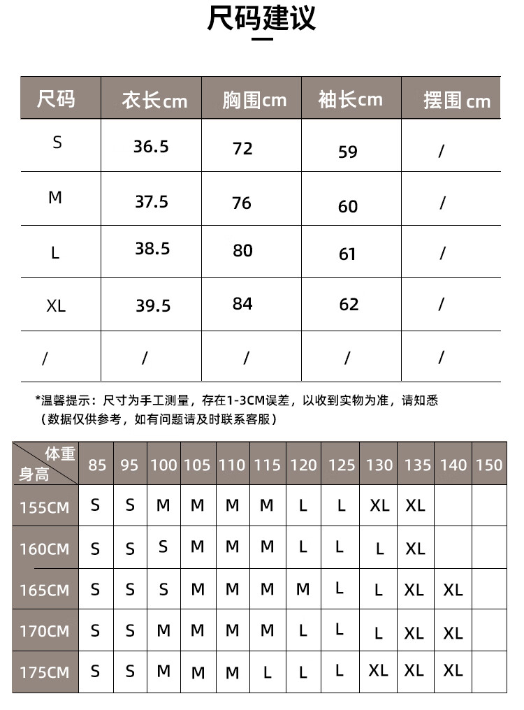China (cm) 160-165/84-86 165-170 / 88-90 167-172 / 92-96 168-173 / 98-102 170-176 / 106-110