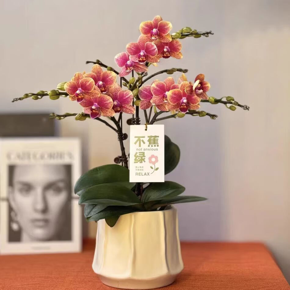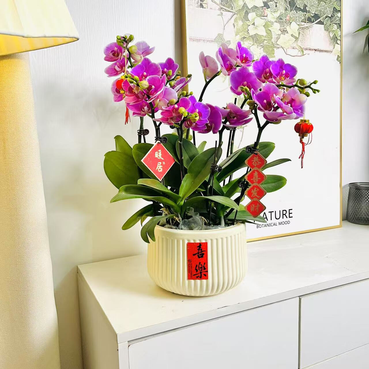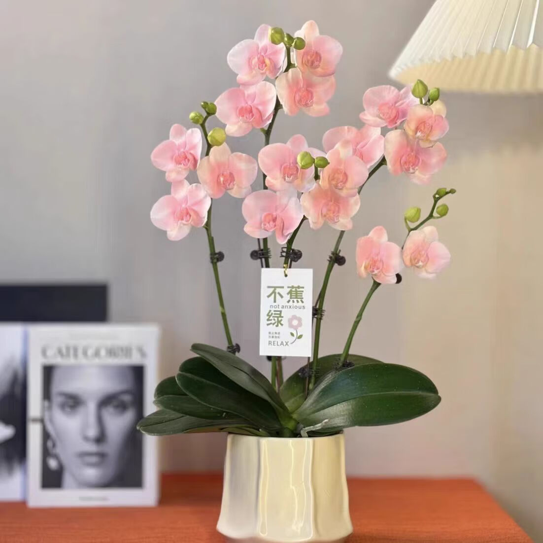 New Year's Eve Flower Phalaenopsis Indoor Flowers Potted Green Plants Living Room Blooms All Seasons Spring Festival New Year Decoration New Year Orchids Pink 3-Sword Phalaenopsis Random Varieties Nordic Pots