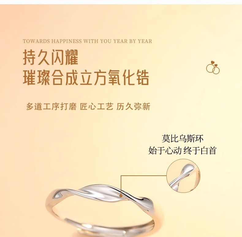 MZMZ Mobius Wheat Platinum Couple Ring PT950 Platinum Pair of Rings Engagement Gift to Girlfriend on Valentine's Day Light Luxury Style-Couple Pair of Rings