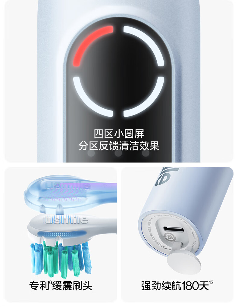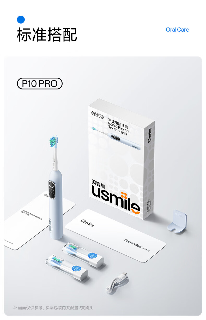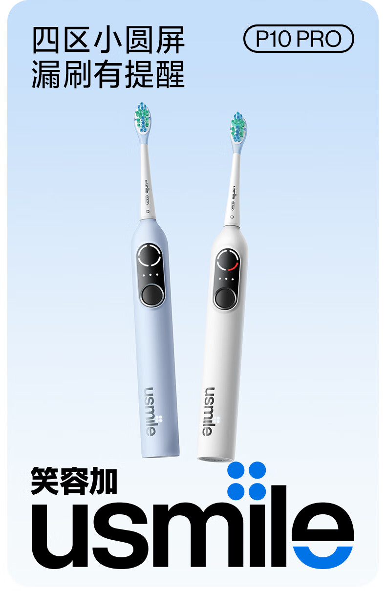 Usmile electric toothbrush P10PRO, the same model as the spokesperson, partition feedback, gift for boyfriend and girlfriend, couple/wedding/wedding gift, corporate procurement, company annual meeting lottery, double pack for couples, P10 PRO white + blue (free toiletry bag)