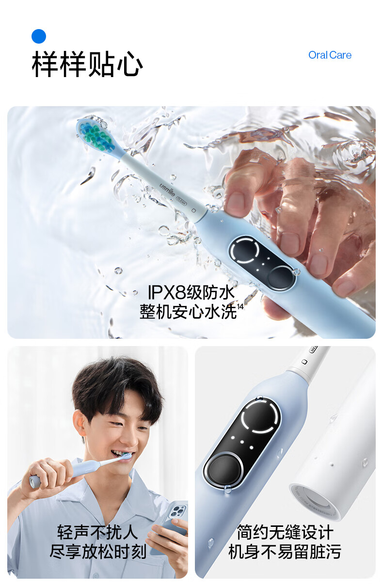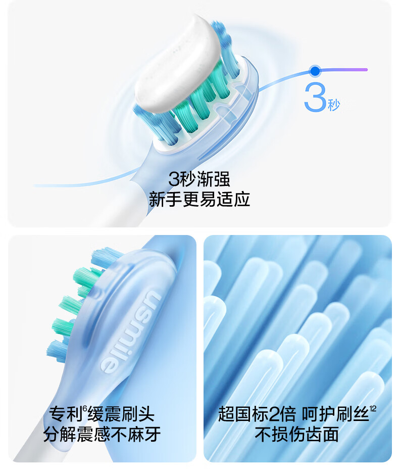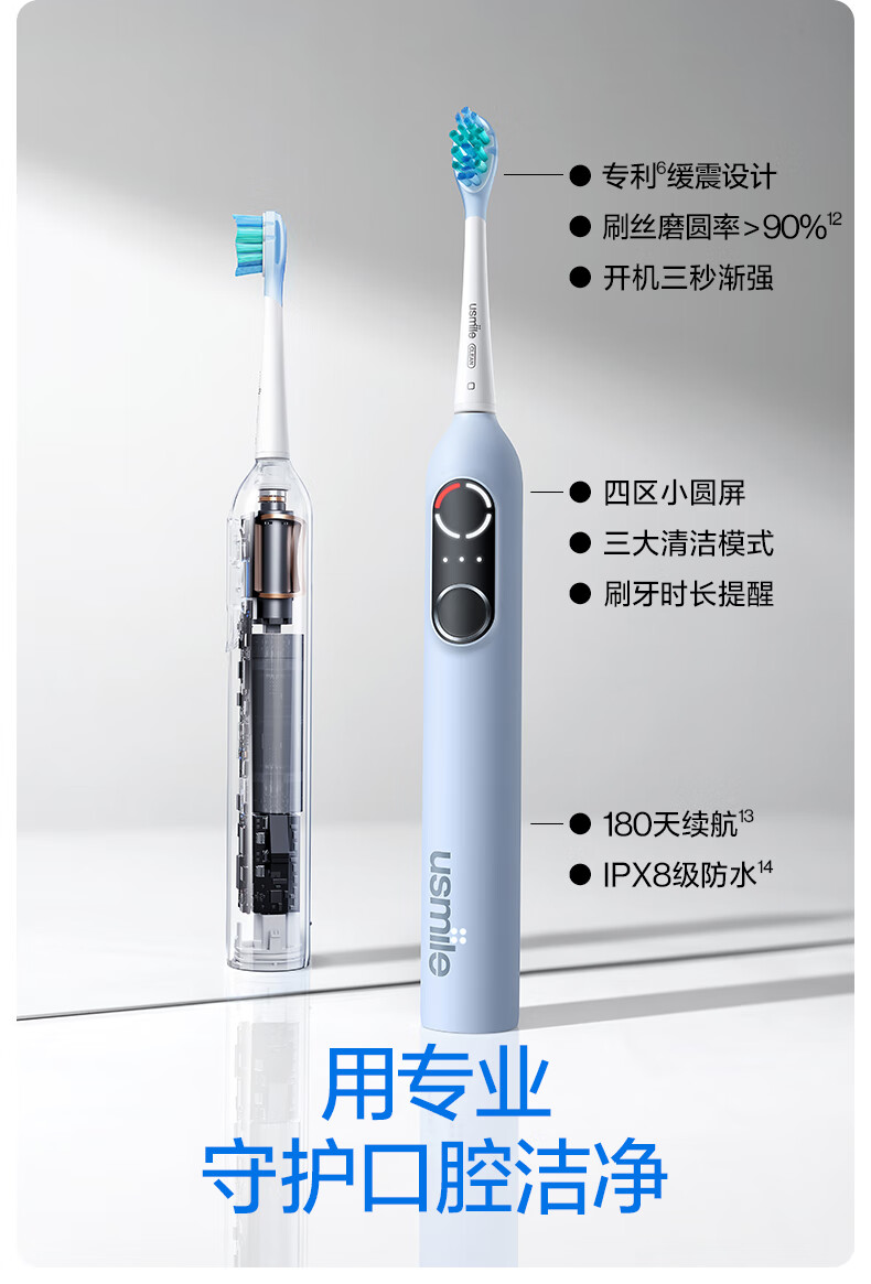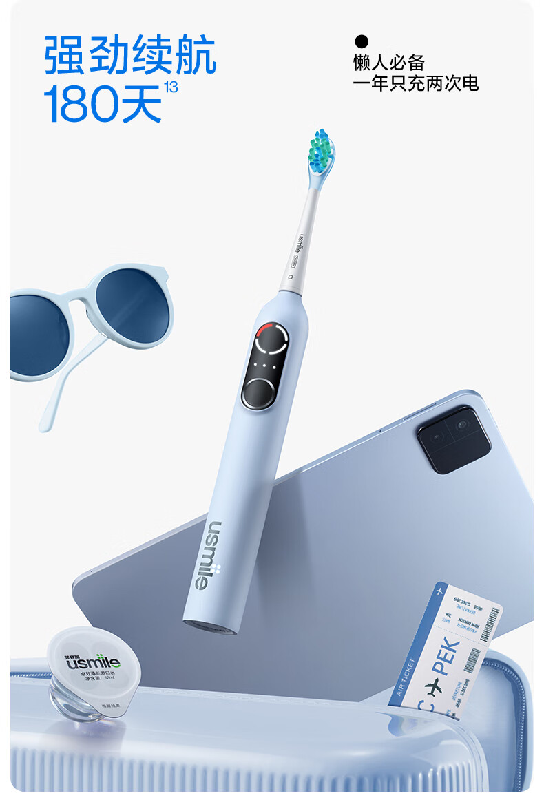 Usmile electric toothbrush P10PRO, the same model as the spokesperson, partition feedback, gift for boyfriend and girlfriend, couple/wedding/wedding gift, corporate procurement, company annual meeting lottery, double pack for couples, P10 PRO white + blue (free toiletry bag)