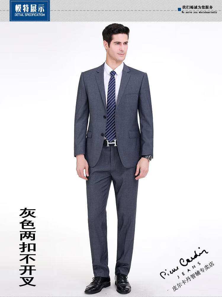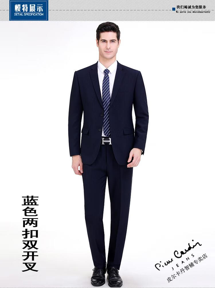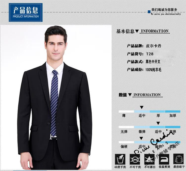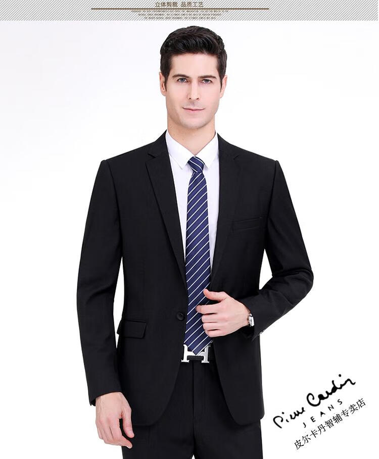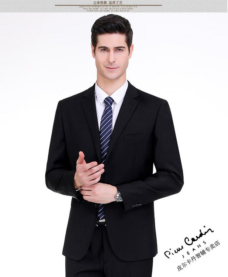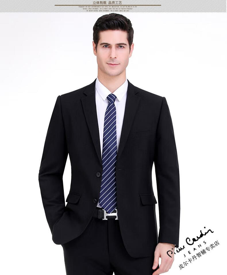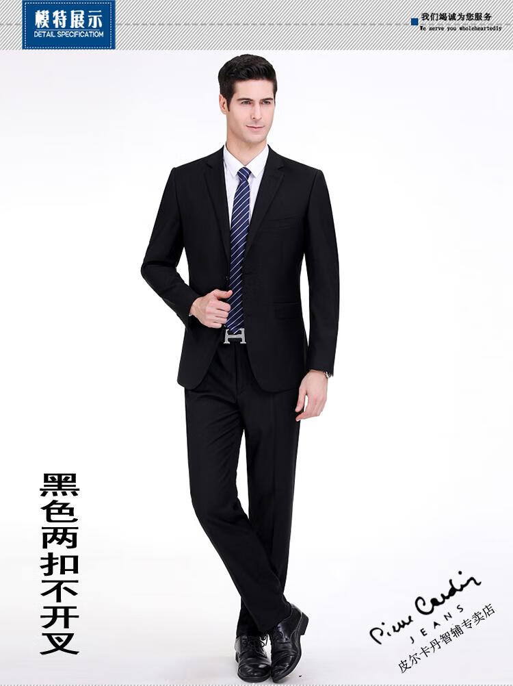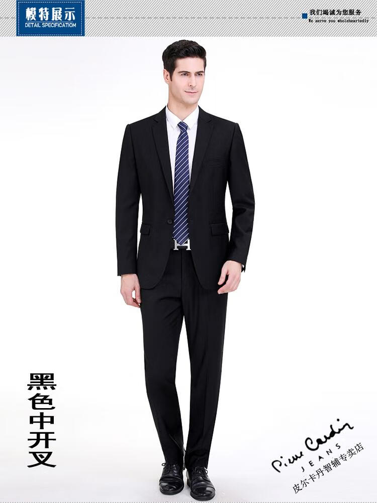 Pierre Cardin brand wool suit suit men's high-end business casual two-piece suit middle-aged men's wedding dress knitted black (two buttons without slits) L 175/50