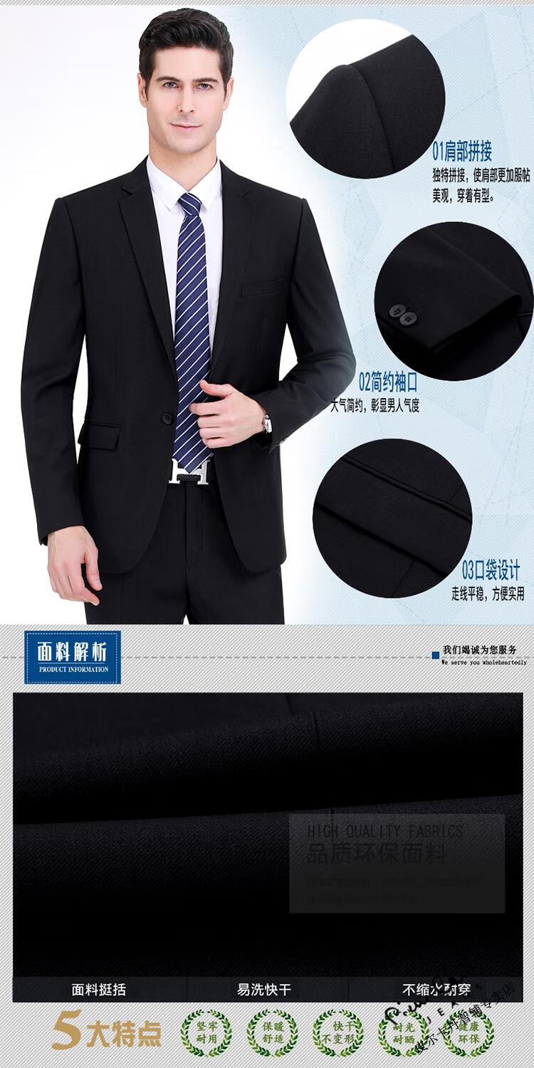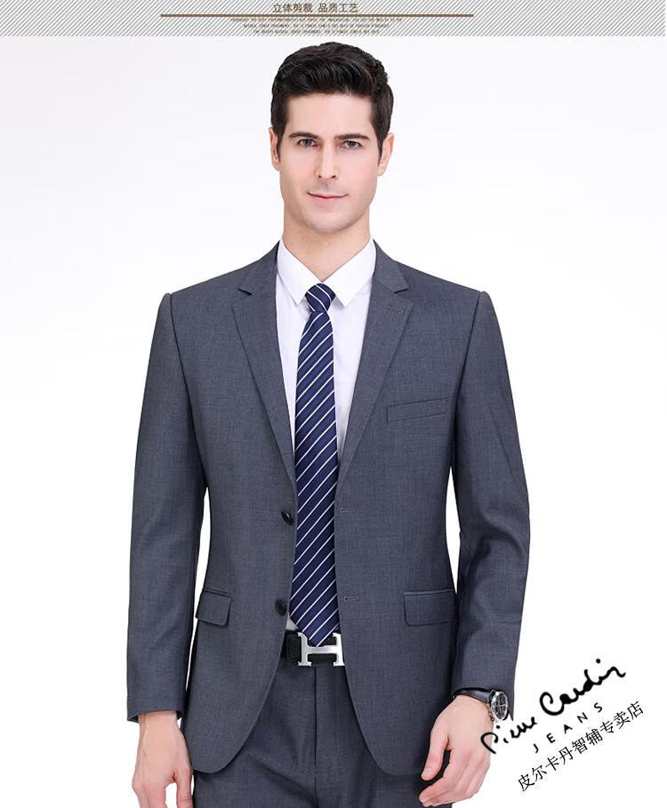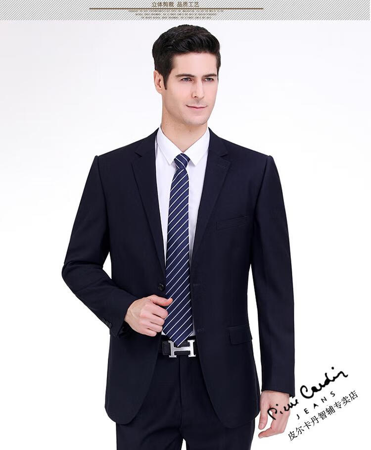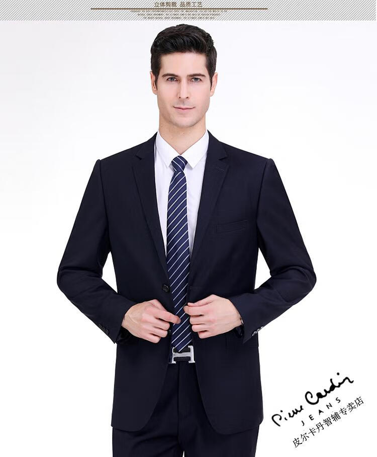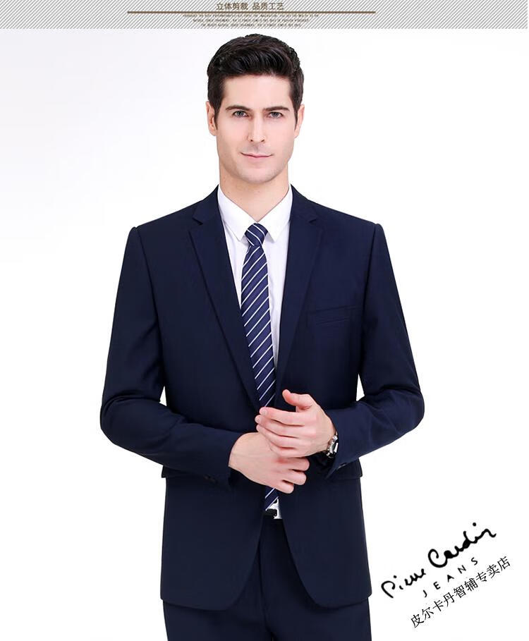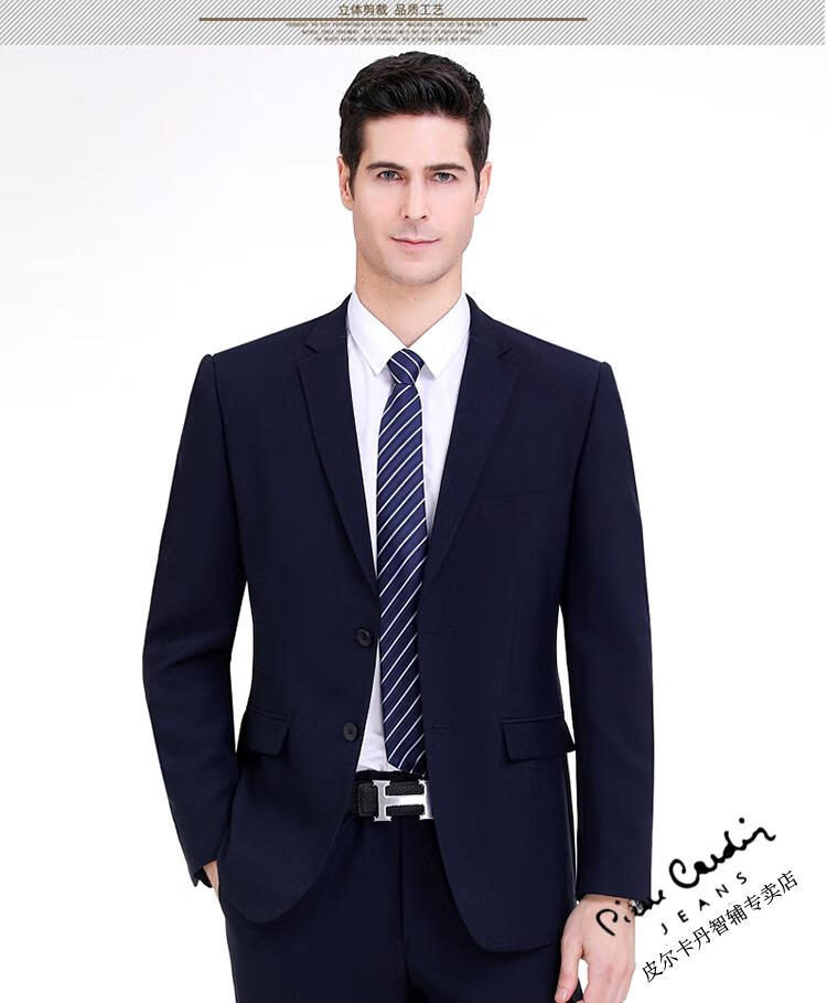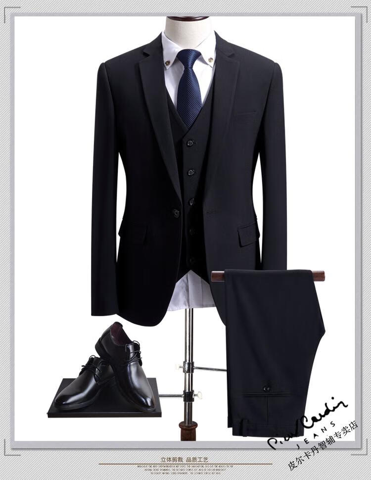 Pierre Cardin brand wool suit suit men's high-end business casual two-piece suit middle-aged men's wedding dress knitted black (two buttons without slits) L 175/50