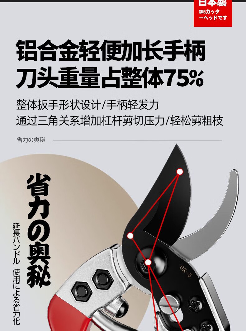 JCZS Japanese original scissors pruning shears gardening scissors sk5 special scissors for pruning flowers and branches fruit tree thick branch scissors SK5 steel maintenance oil set
