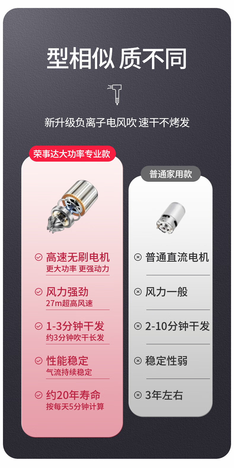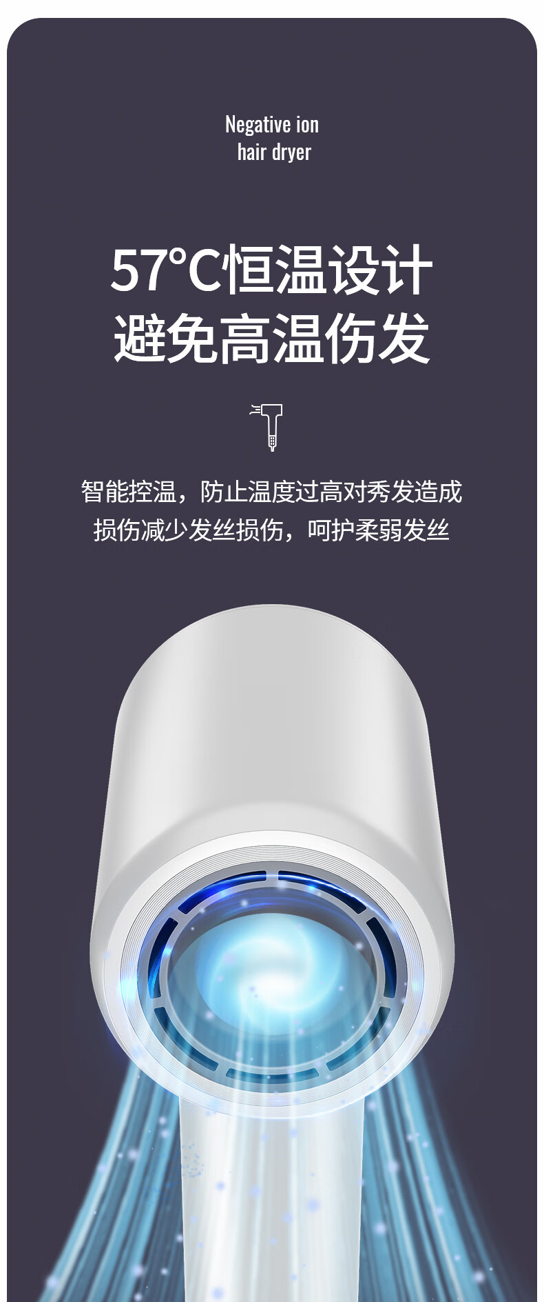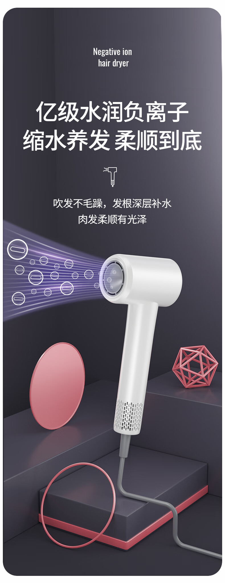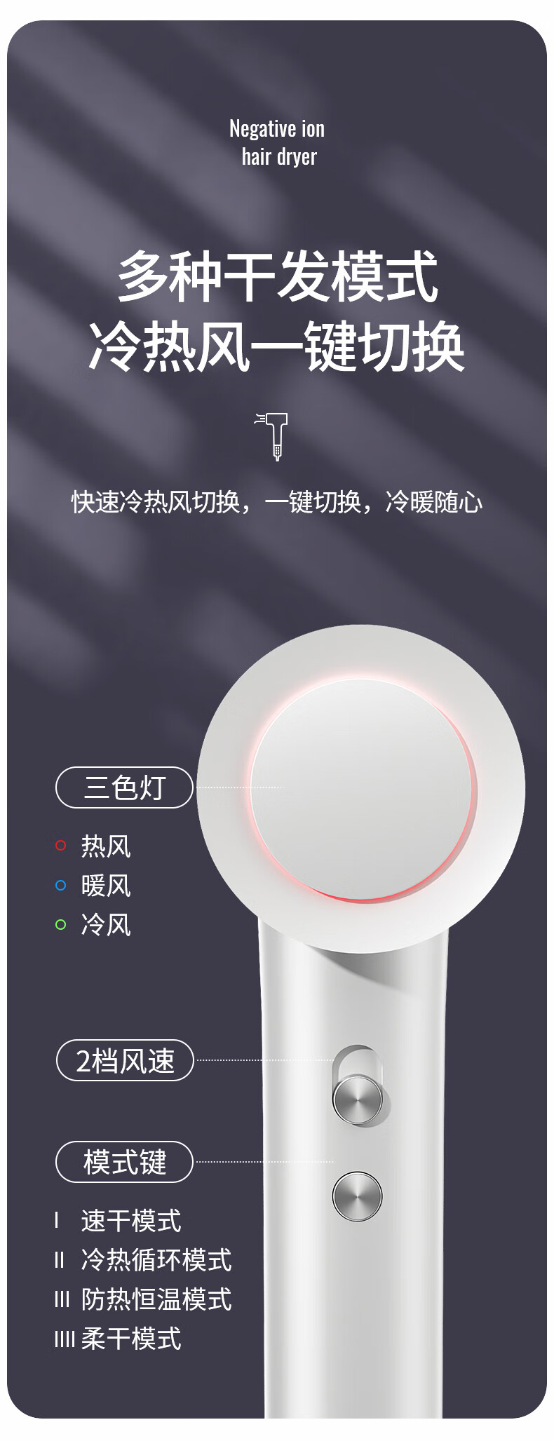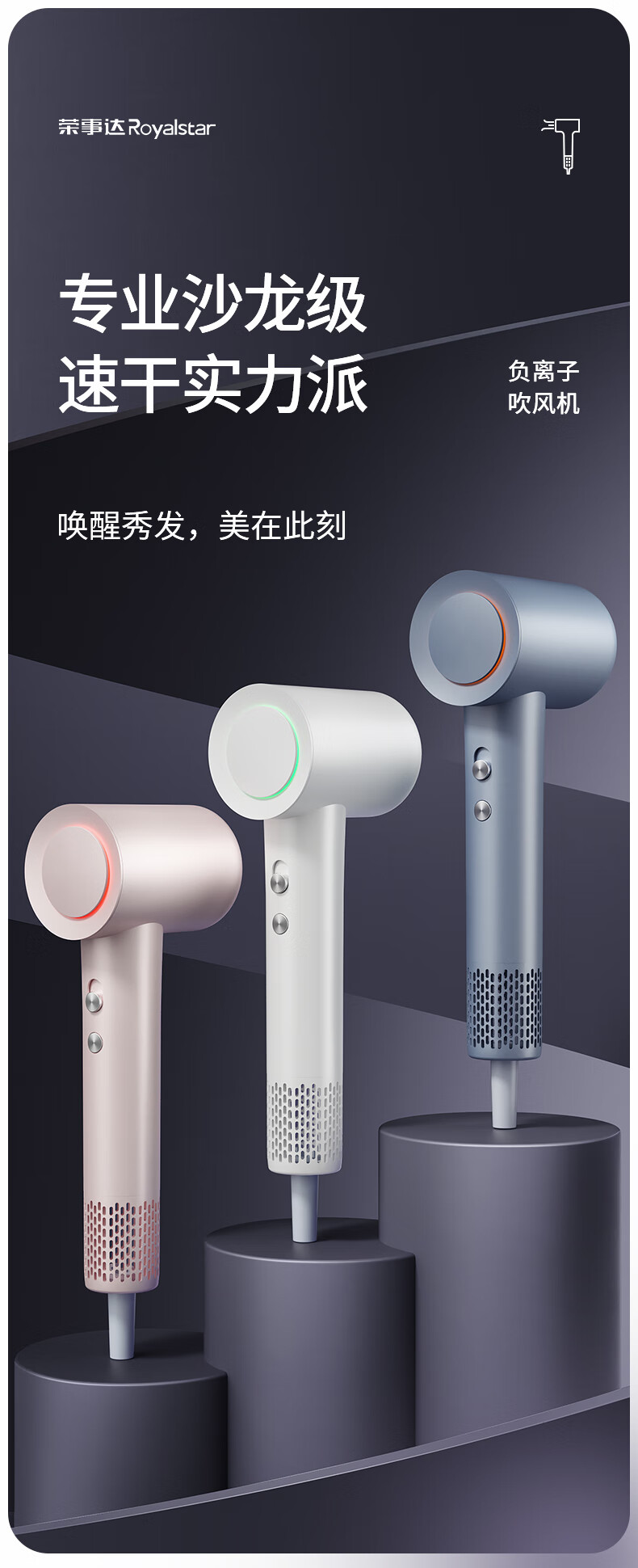 Royalstar household high-power high-speed quick-drying hair dryer negative ions do not hurt the power generation hair dryer low noise portable hair dryer constant temperature blue light hair care gift box white 400 million negative ions hair care 95% customer choice