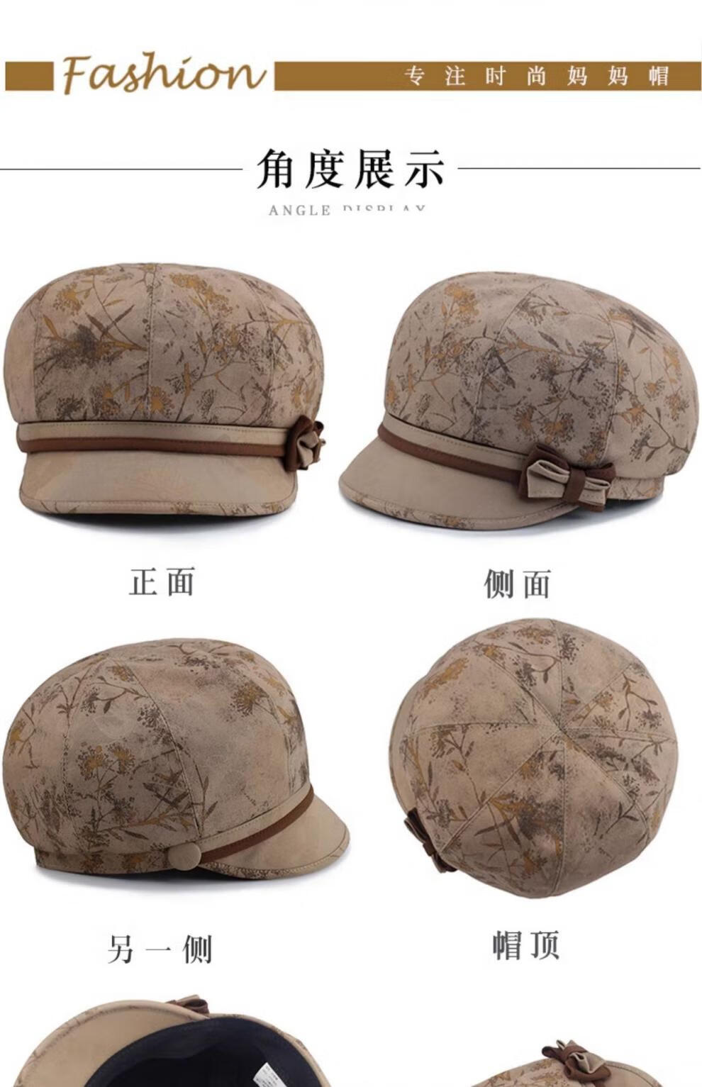 Woodpecker (TUCANO) middle-aged and elderly hat women's spring and autumn mother's peaked hat thin grandma casual autumn sun hat old lady cloth hat khaki L adjustable