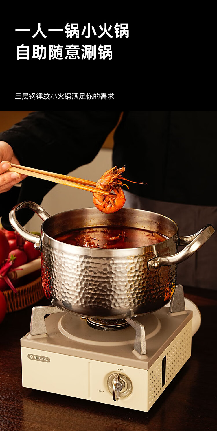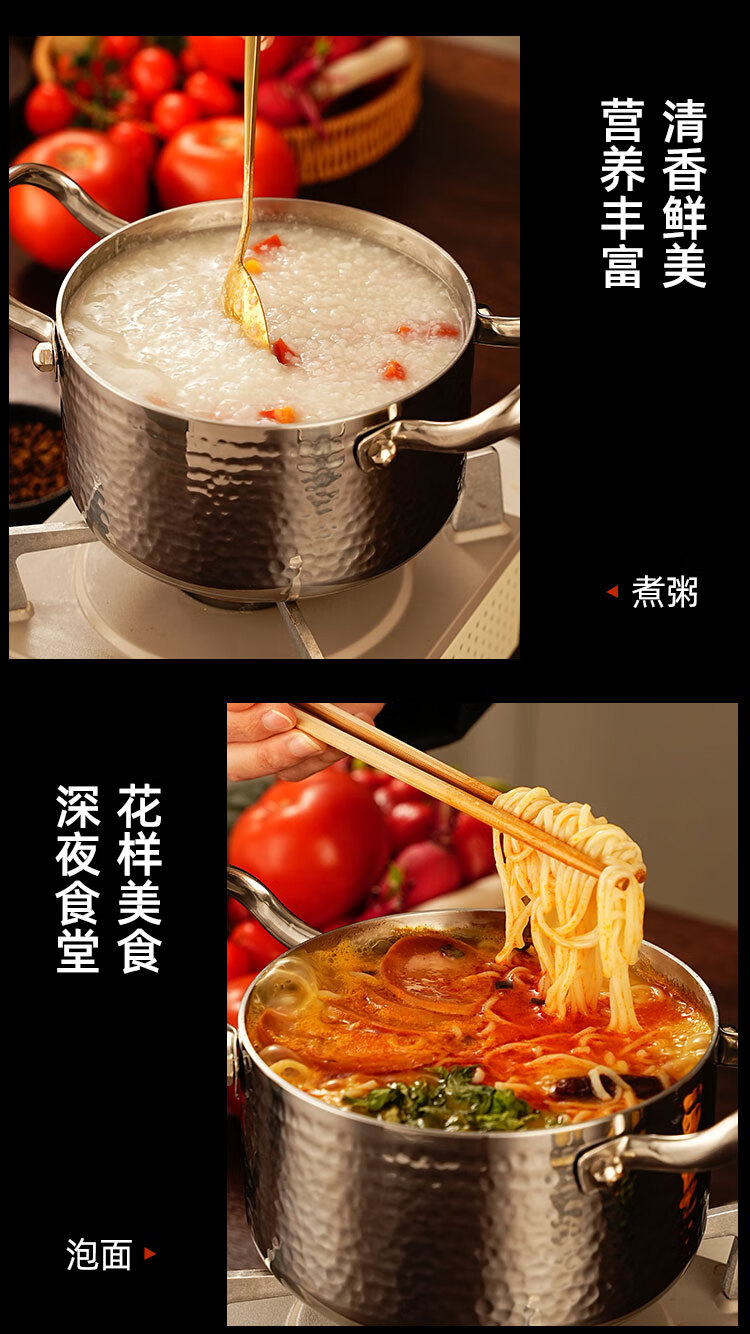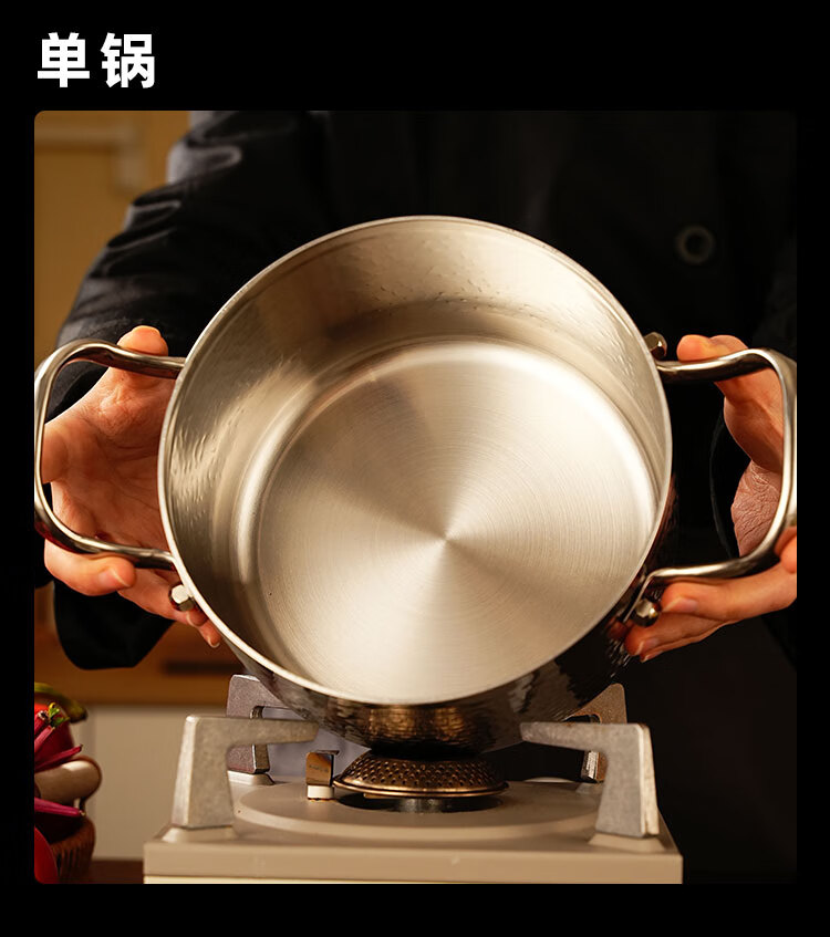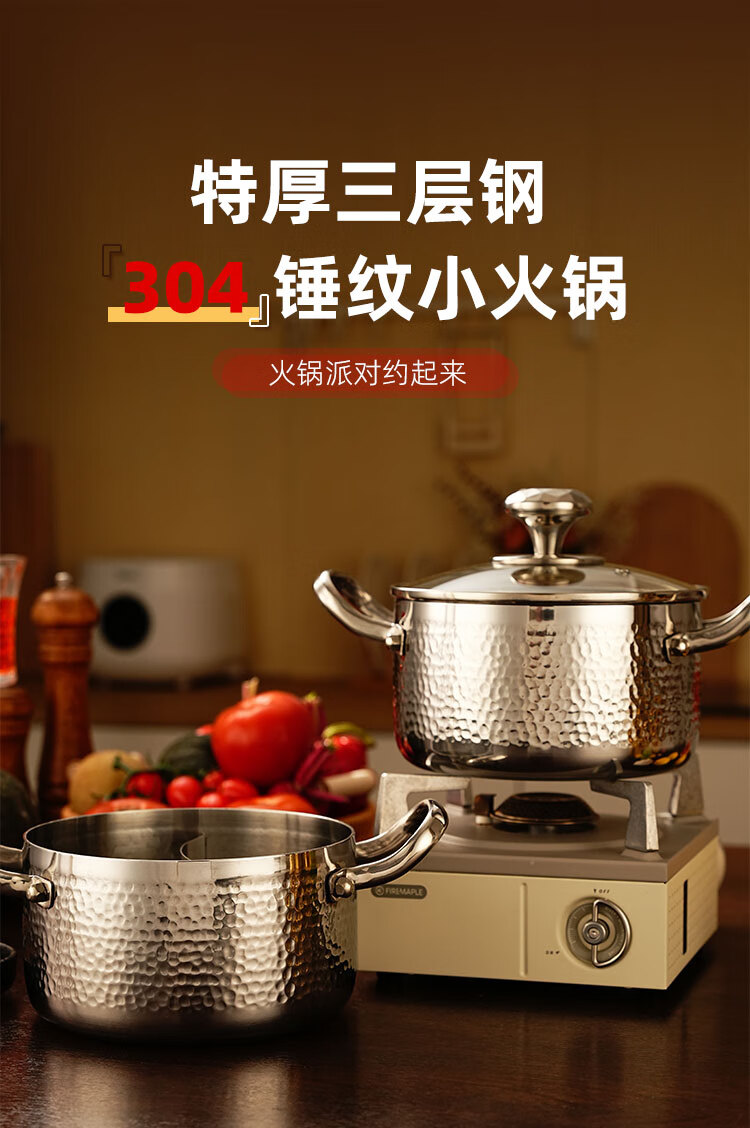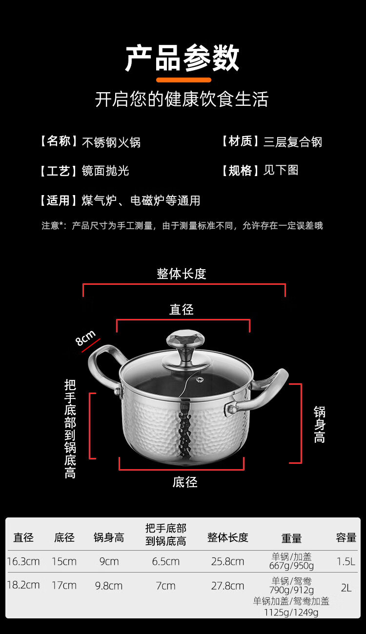 Jinjiang mini olla de acero inoxidable 304 engrosada de tres capas, una persona, una olla, cocina de inducción comercial doméstica, olla caliente pequeña individual, olla individual + tapa de vidrio 16 cm