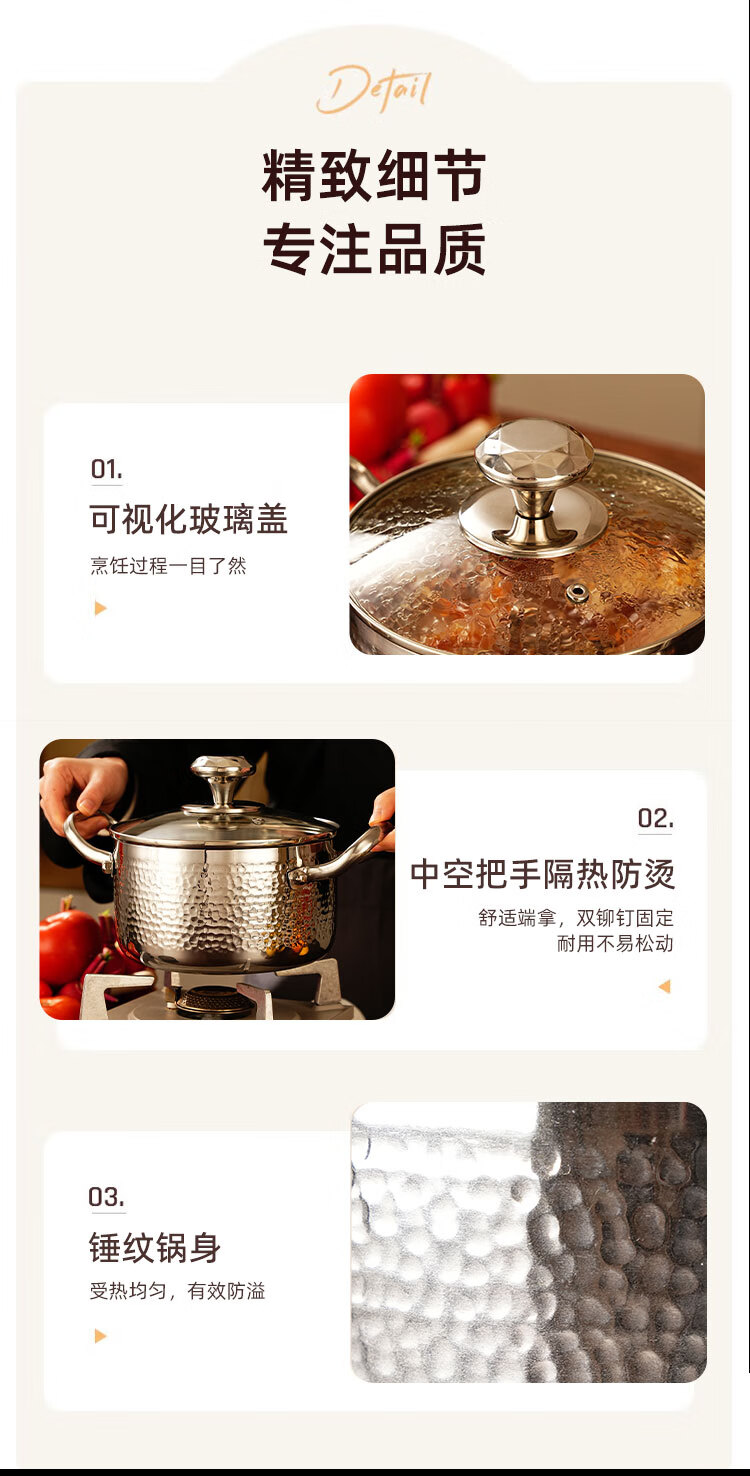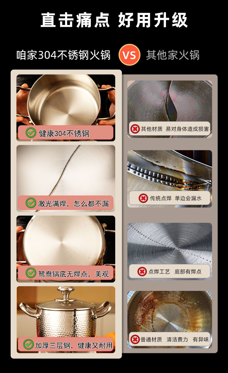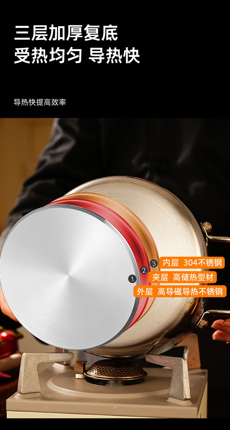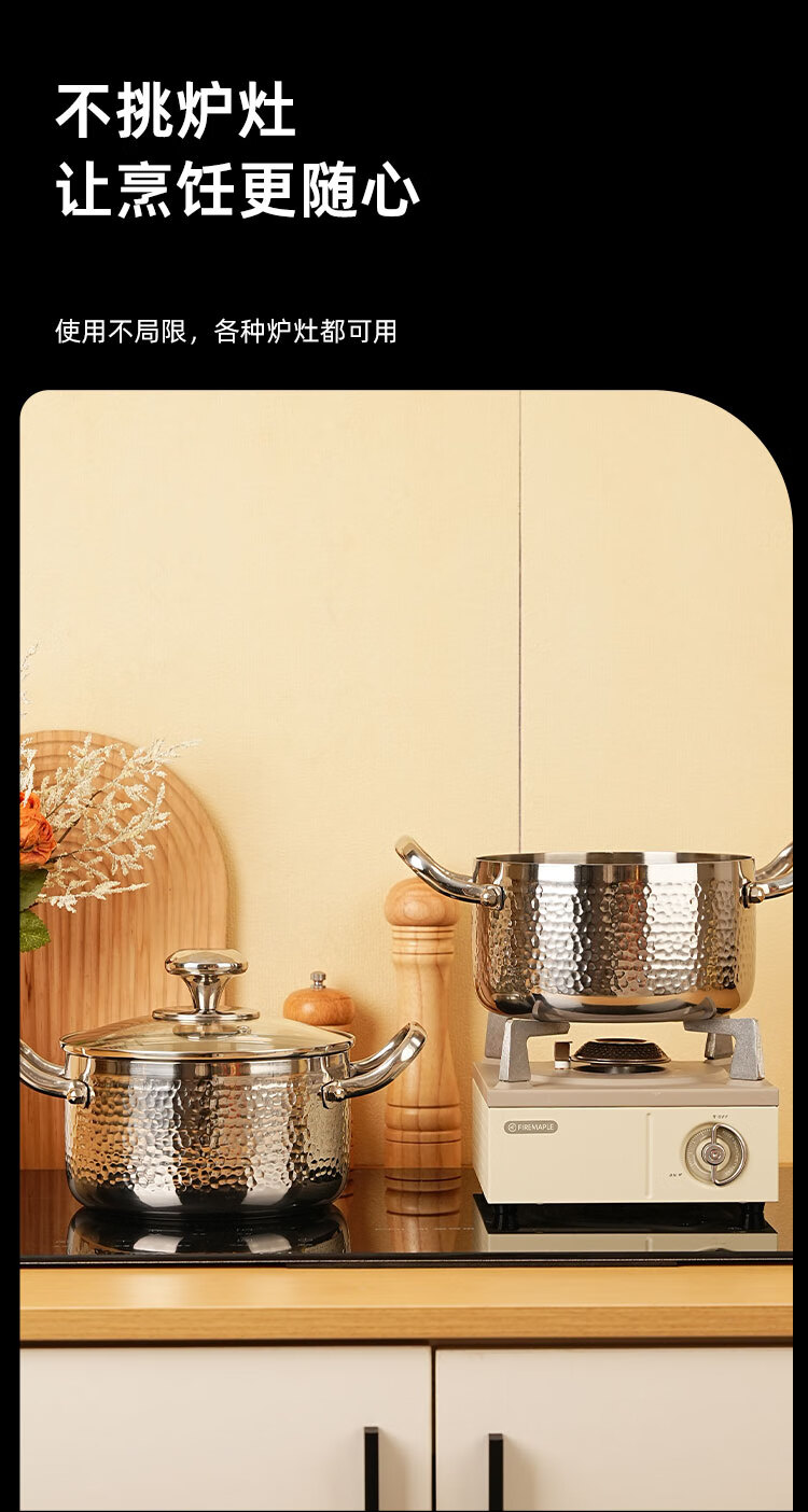 Jinjiang mini olla de acero inoxidable 304 engrosada de tres capas, una persona, una olla, cocina de inducción comercial doméstica, olla caliente pequeña individual, olla individual + tapa de vidrio 16 cm