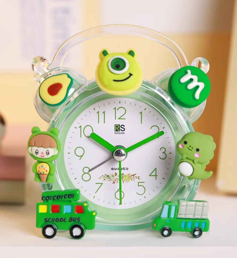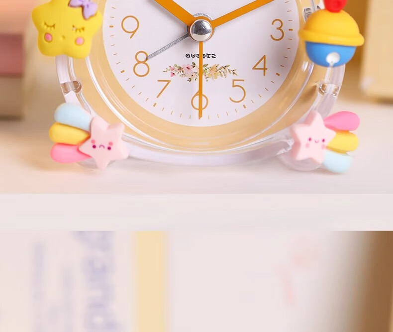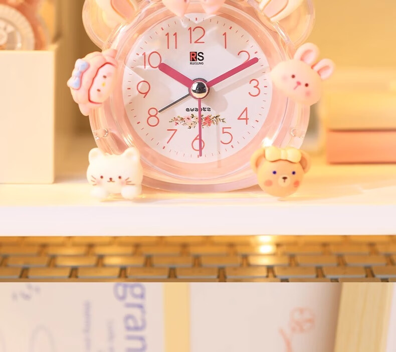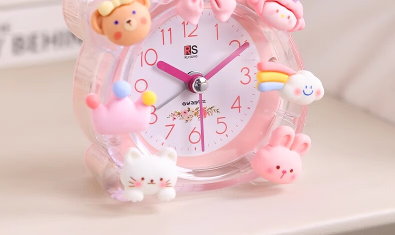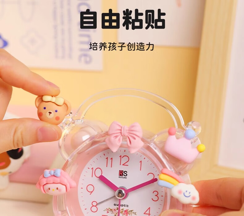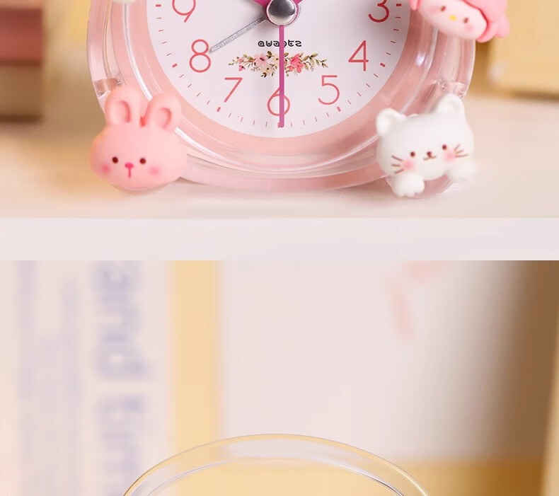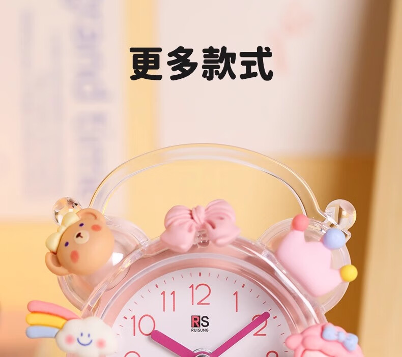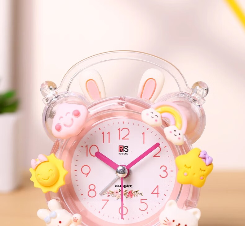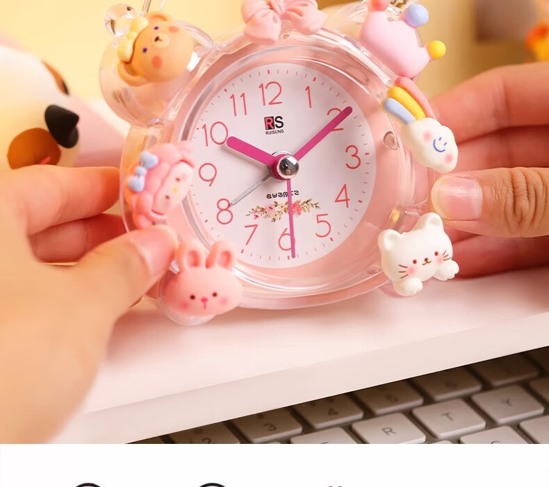 Qutong children's small alarm clock girl mini watch student special wake-up artifact 2026 new smart learning cute silent clock pink-pink bow sticker