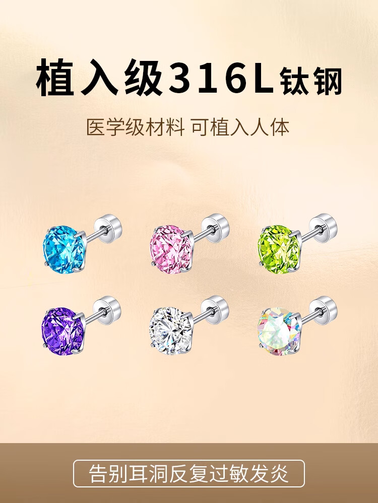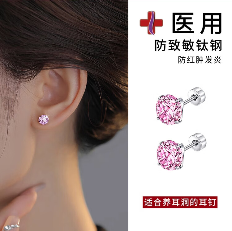 Lnieer Medical Titanium Steel Earrings Female Huazi Titanium Alloy Ear Bone Nails Flash Screw Buckle Ear Hole Cochlear Nails Earrings AB Drill Pair Medical Grade Titanium Steel