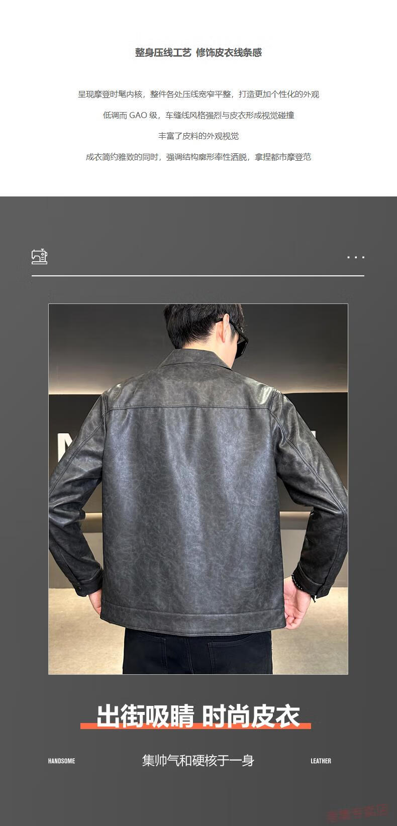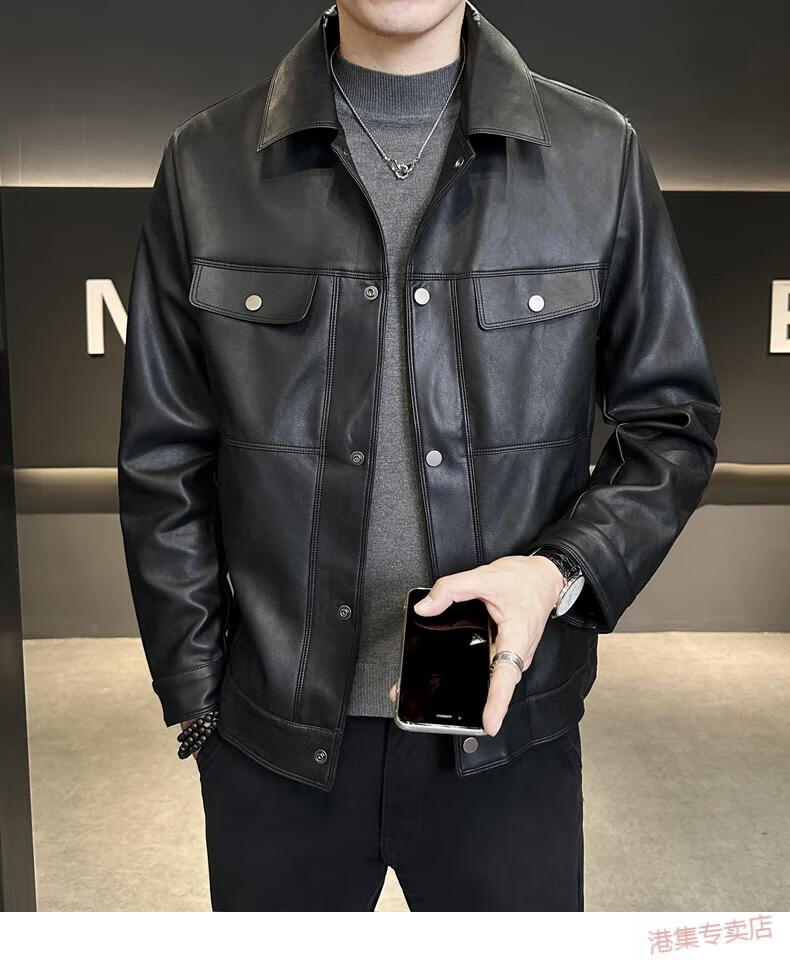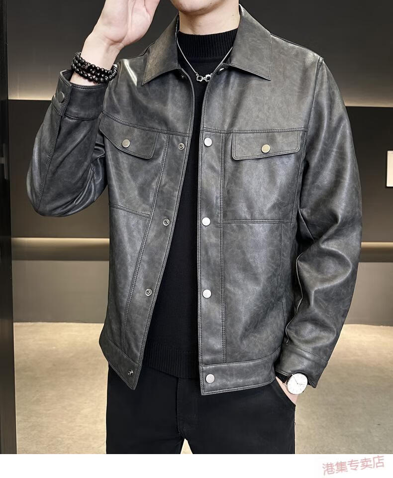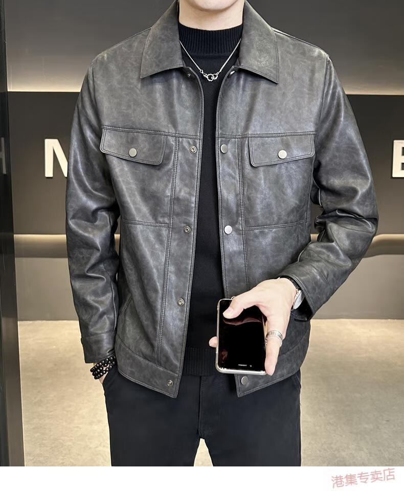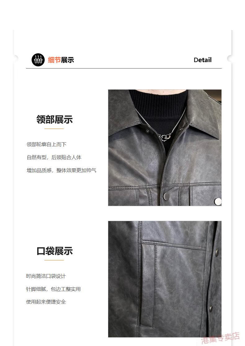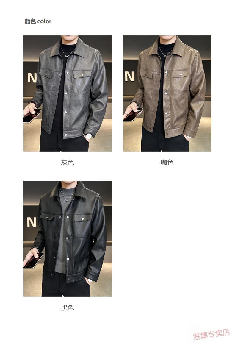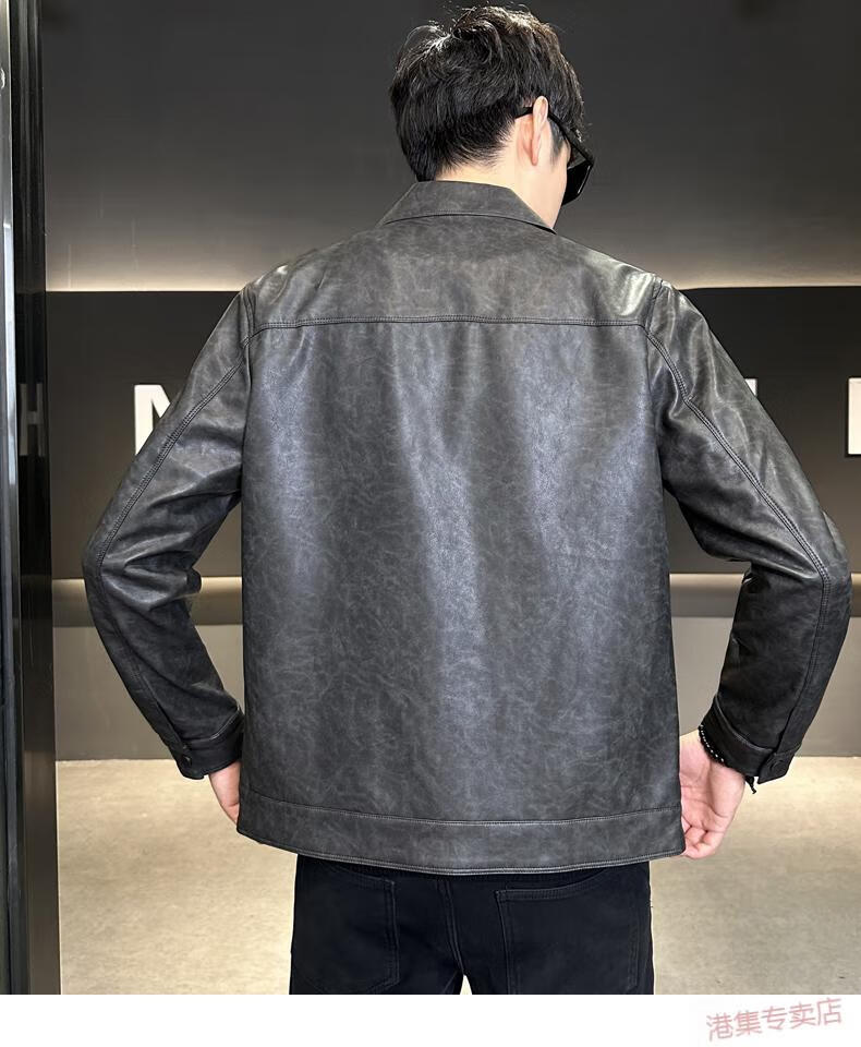 JEEP SPIRIT American retro pu leather jacket men's spring and autumn style multi-pocket motorcycle short style trendy handsome leather jacket coffee color M