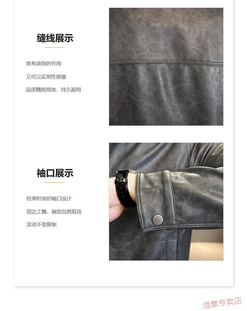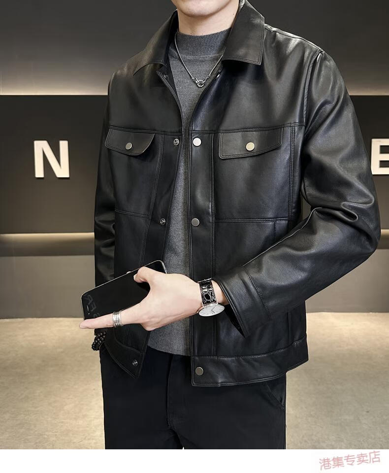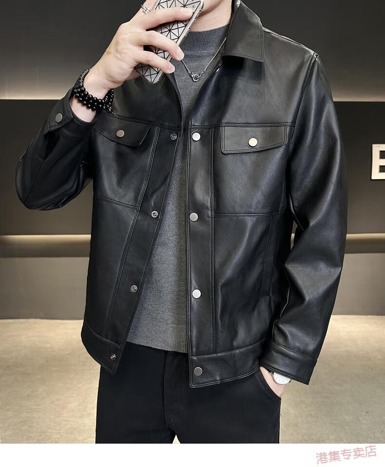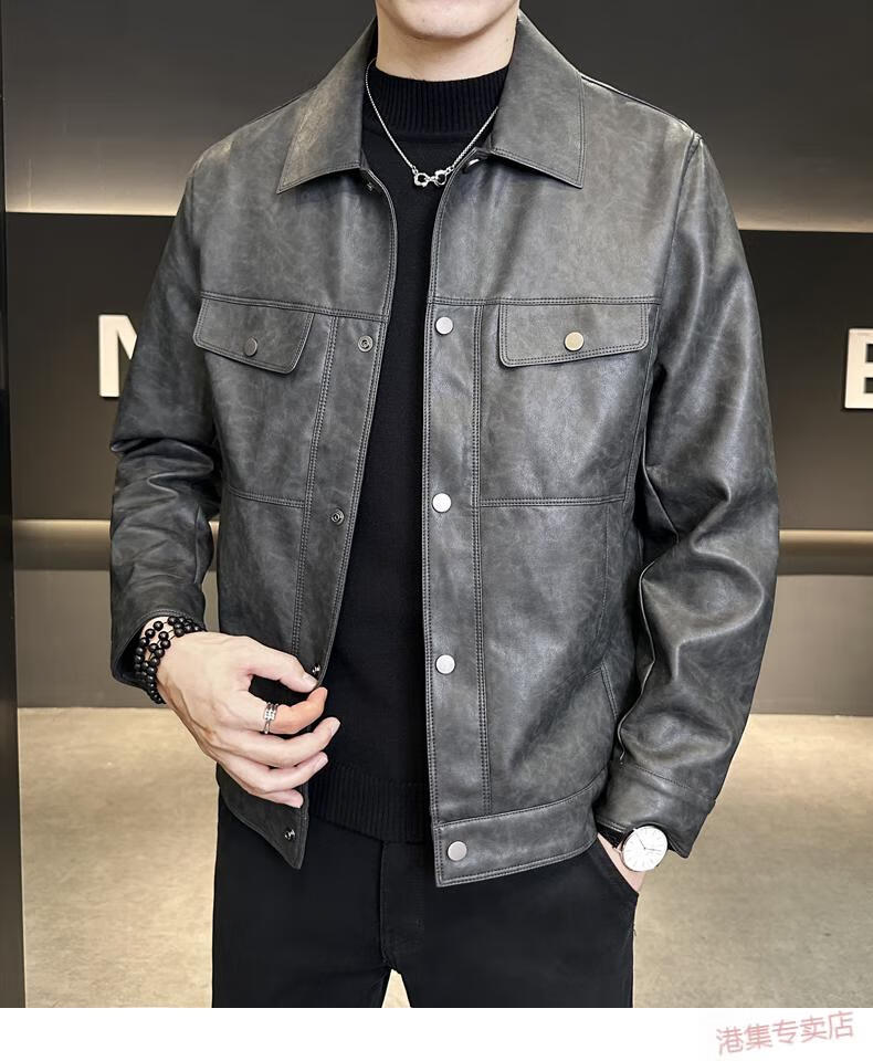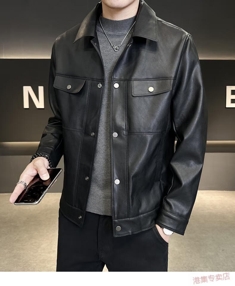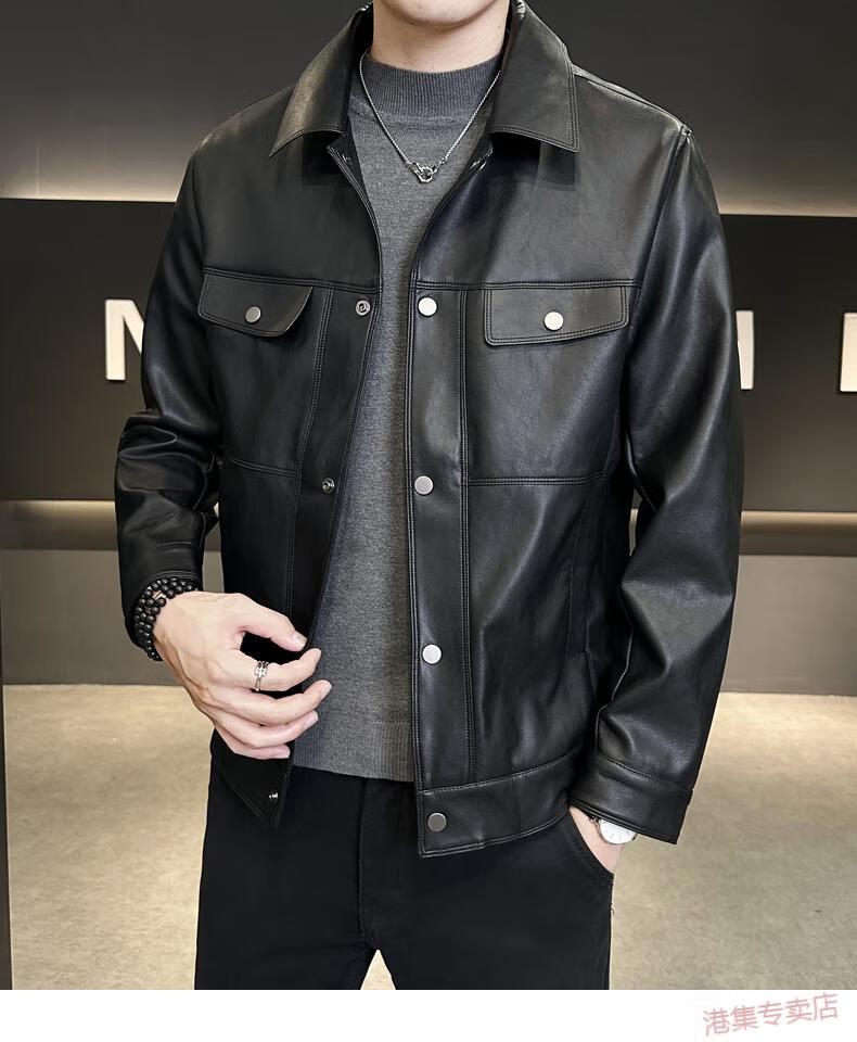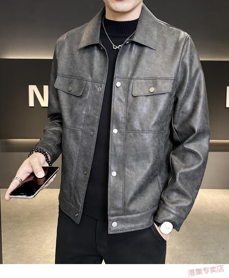 JEEP SPIRIT American retro pu leather jacket men's spring and autumn style multi-pocket motorcycle short style trendy handsome leather jacket coffee color M