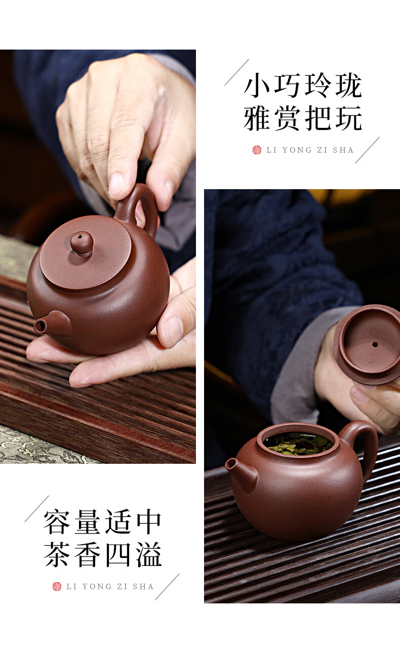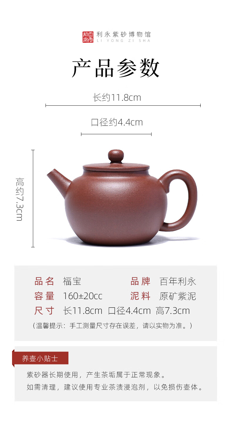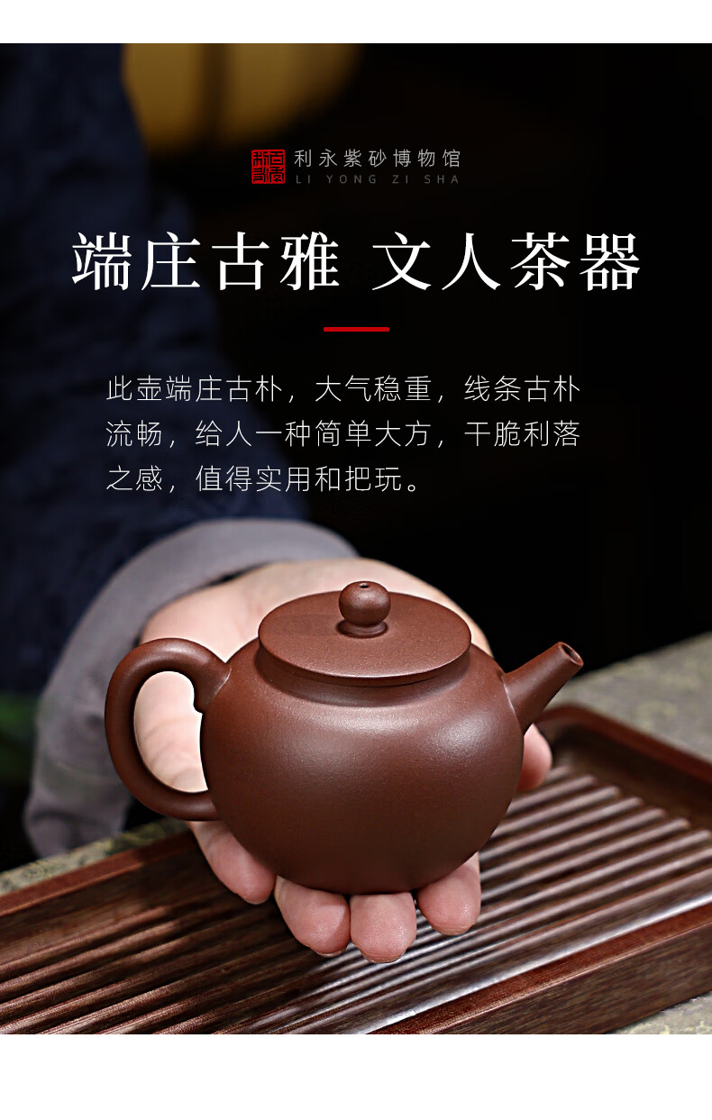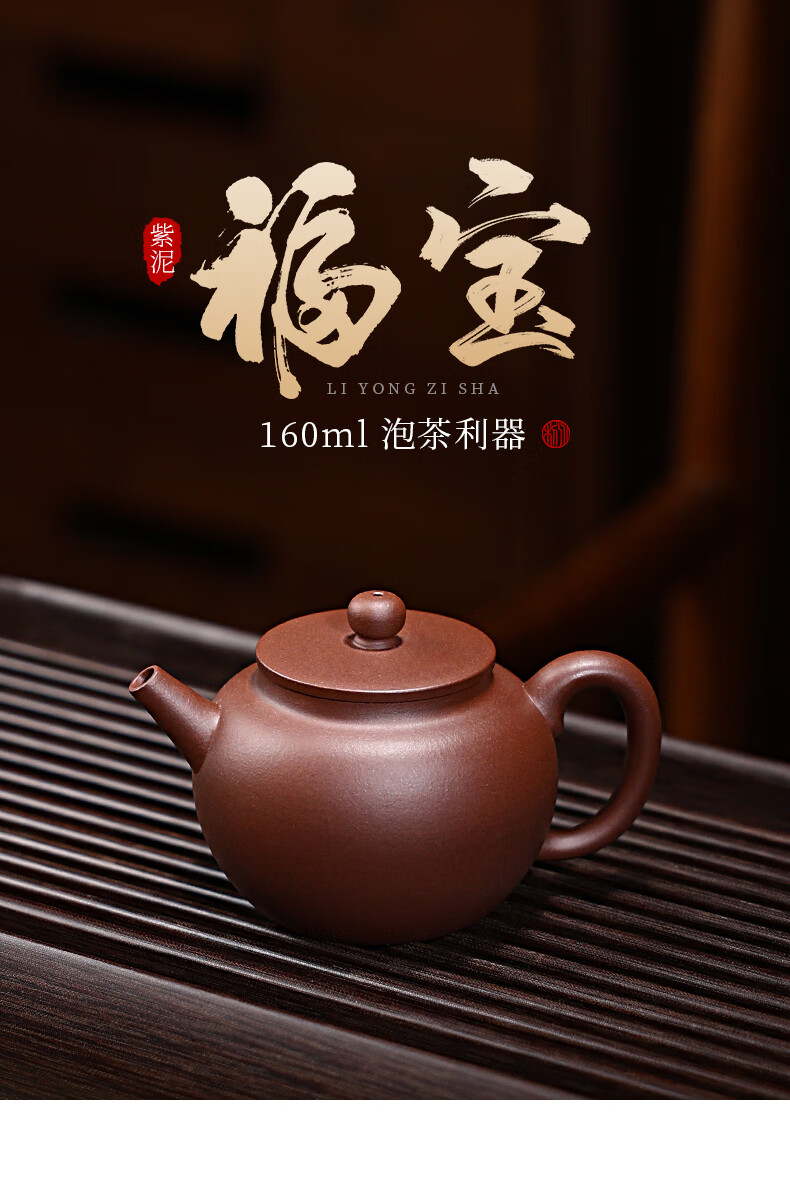 Centenary Liyong Yixing Zisha Pot Purely Handmade Original Mineral Purple Clay Fubao Flat Cover Household Teapot Kung Fu Tea Set for Elders Fubao-Purple Clay 160ml