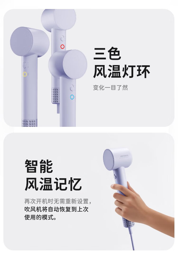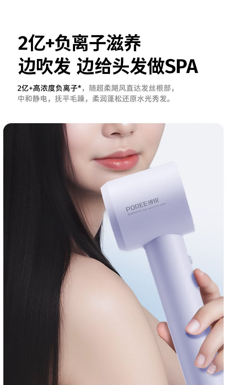 POREE high-speed hair dryer for household use 200 million + negative ion hair care, strong wind, quick drying and noise reduction, portable high-power hair dryer as a holiday birthday gift for girlfriend, 3 minutes quick drying* Encounter Purple PH1653