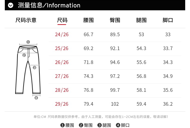 USA(inch) 28-30 30-32 32-34 34-38 38-42