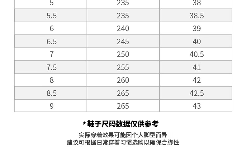 China (cm) 36 - 37 38 - 39 40 - 42 43 - 44 45 - 47