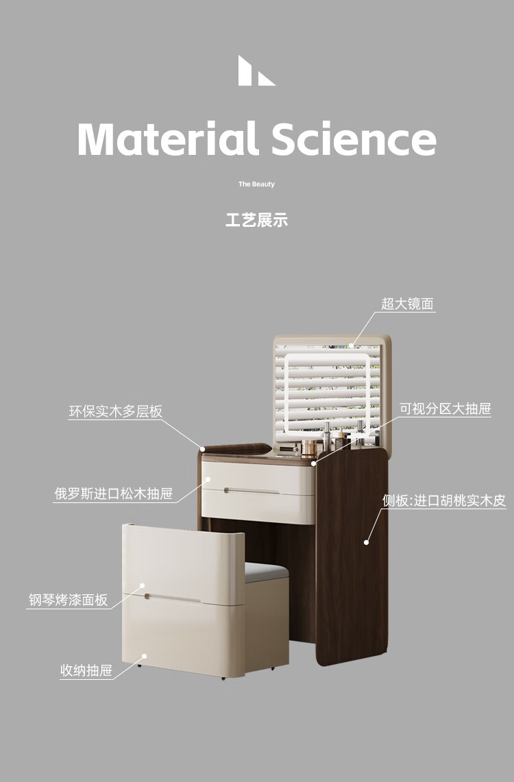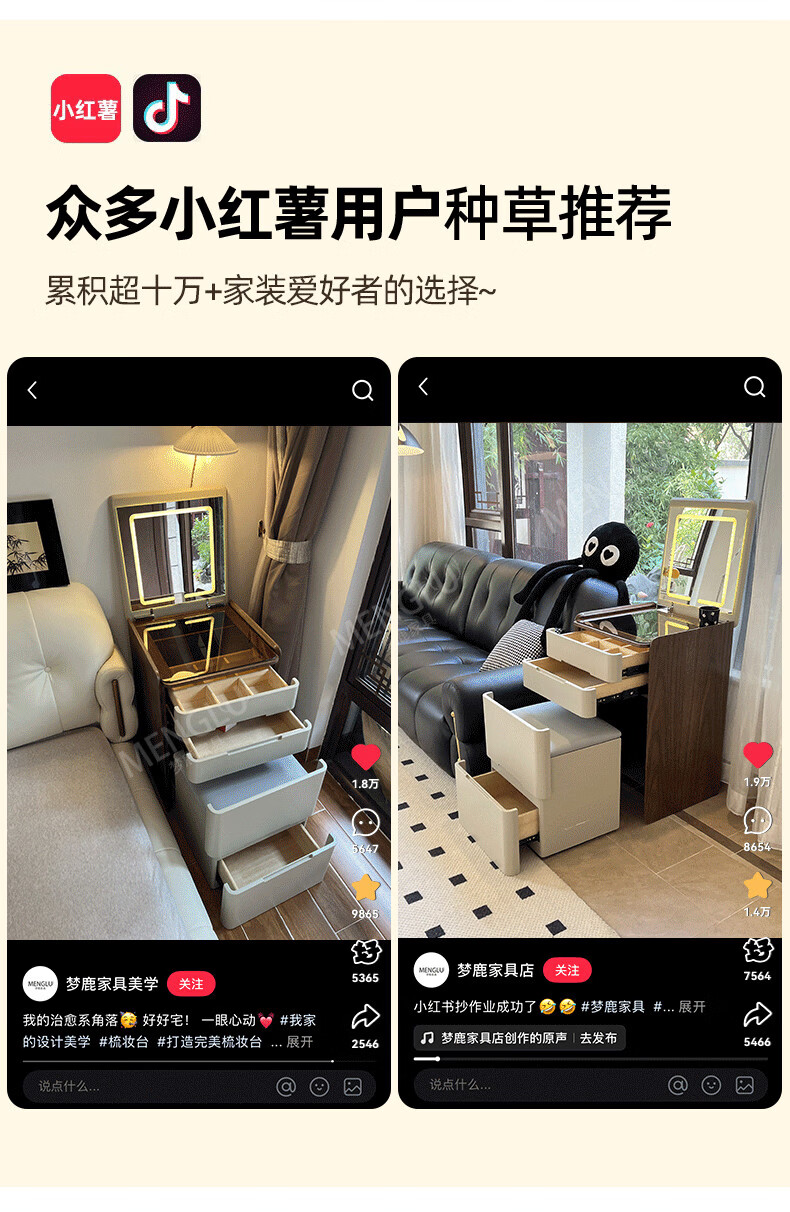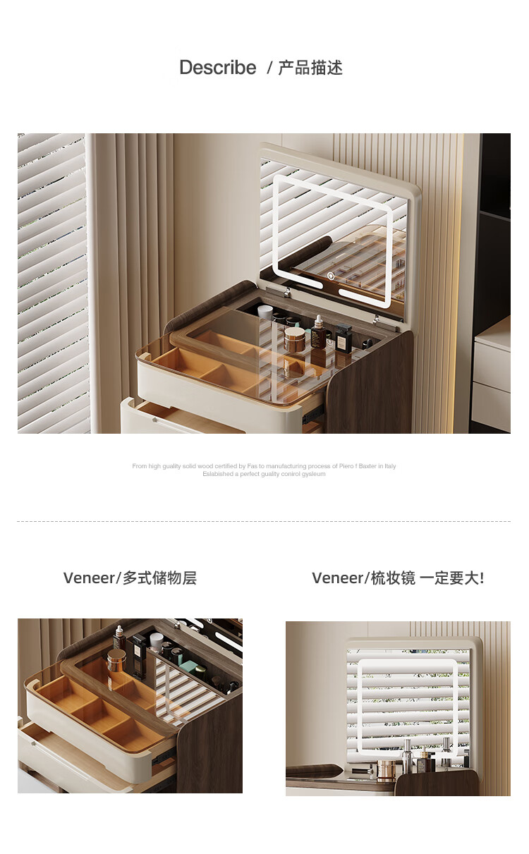 Menglu A3 Dresser Small 50cm Storage Cabinet Integrated Bedroom Mini Flip Dressing Table Bedside Table New A3 50cm Flip Dresser