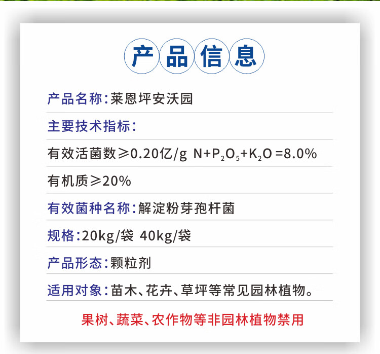 Laianping Anwoyuan compound microbial fertilizer Bacillus organic fertilizer to improve lawn flowers and seedlings special granular fertilizer Woyuan 1 bag*20kg