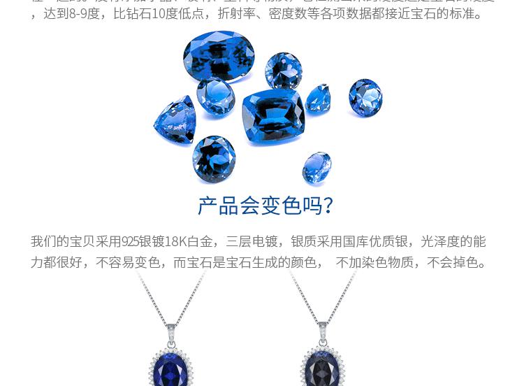 Fat Donglai same style sapphire pendant oval tanzanite necklace pendant women's clavicle silver rose gold (main stone 8X10mm) without chain