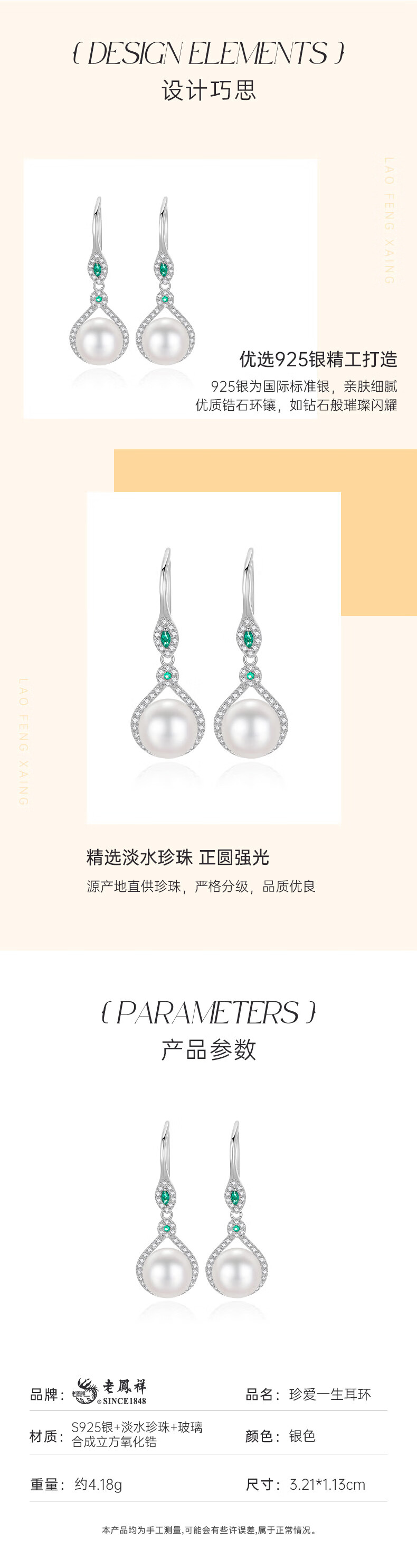 Lao Fengxiang sterling silver earrings for women, pearl earrings, high-end earrings, wedding anniversary birthday gifts for girlfriends and wives, freshwater pearls* precious earrings (same day delivery)