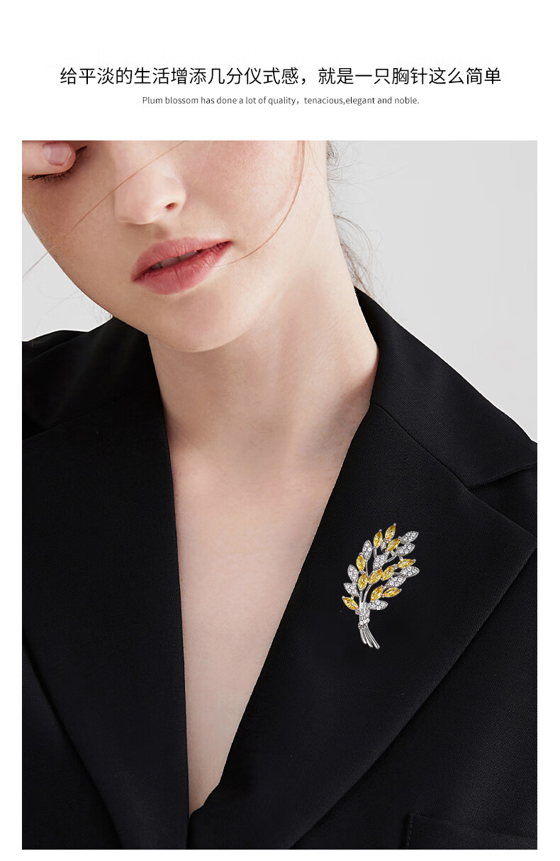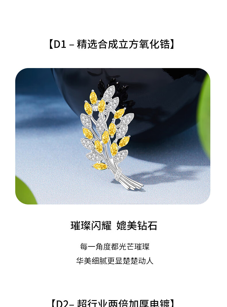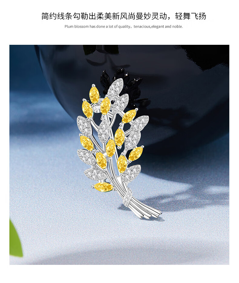 Lao Fengxiang high-end brooch for women, exquisite corsage pin, luxury wedding anniversary gift for girlfriend and wife's birthday, light luxury * wheat ear brooch - brand gift box
