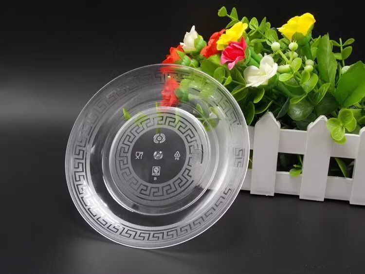 Disposable transparent crystal plate thickened aviation hard plate home wedding banquet wedding fruit 22.5 thick crystal large disc thickened hard 30 pieces