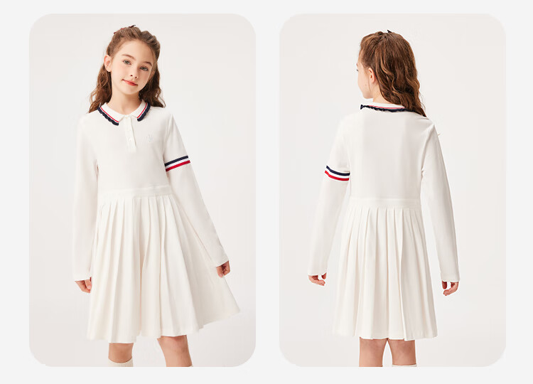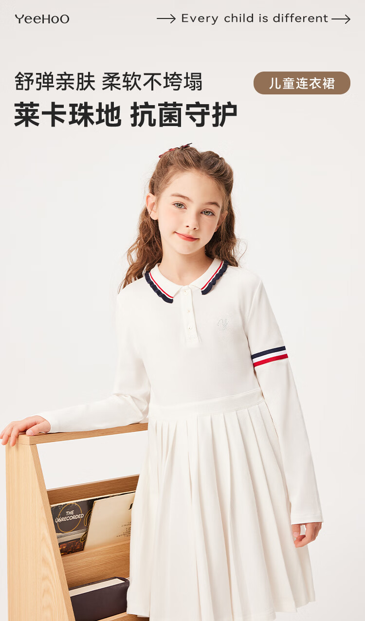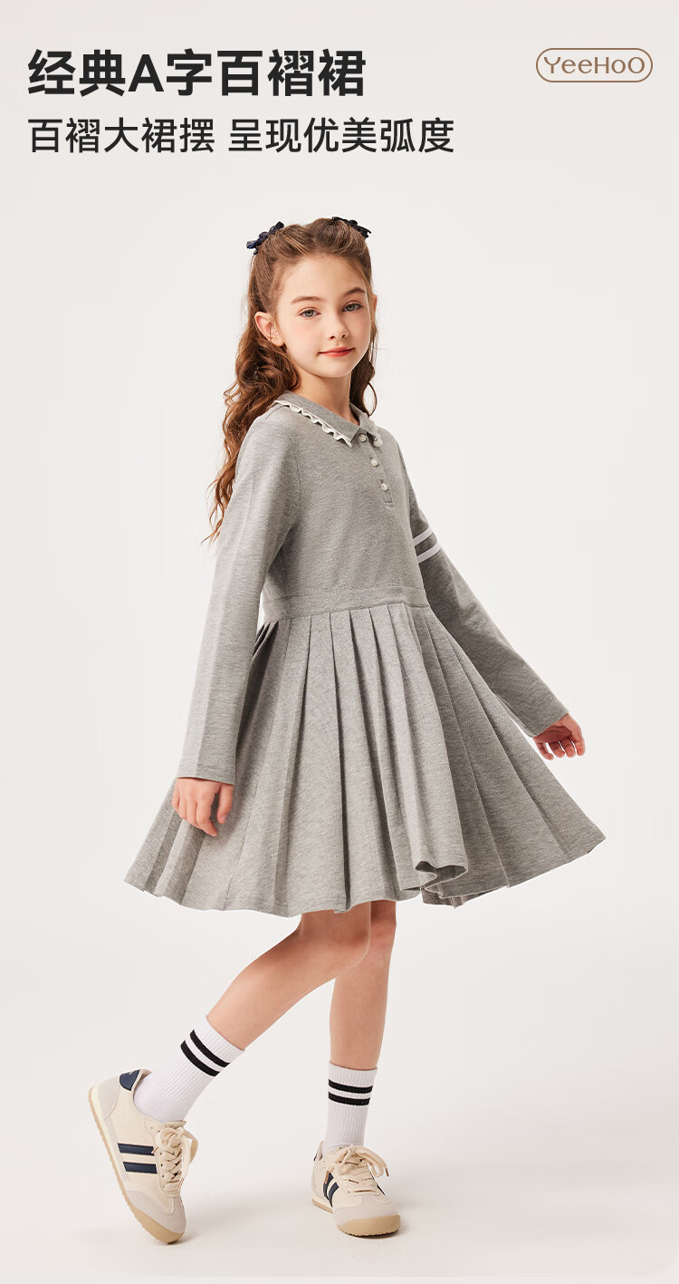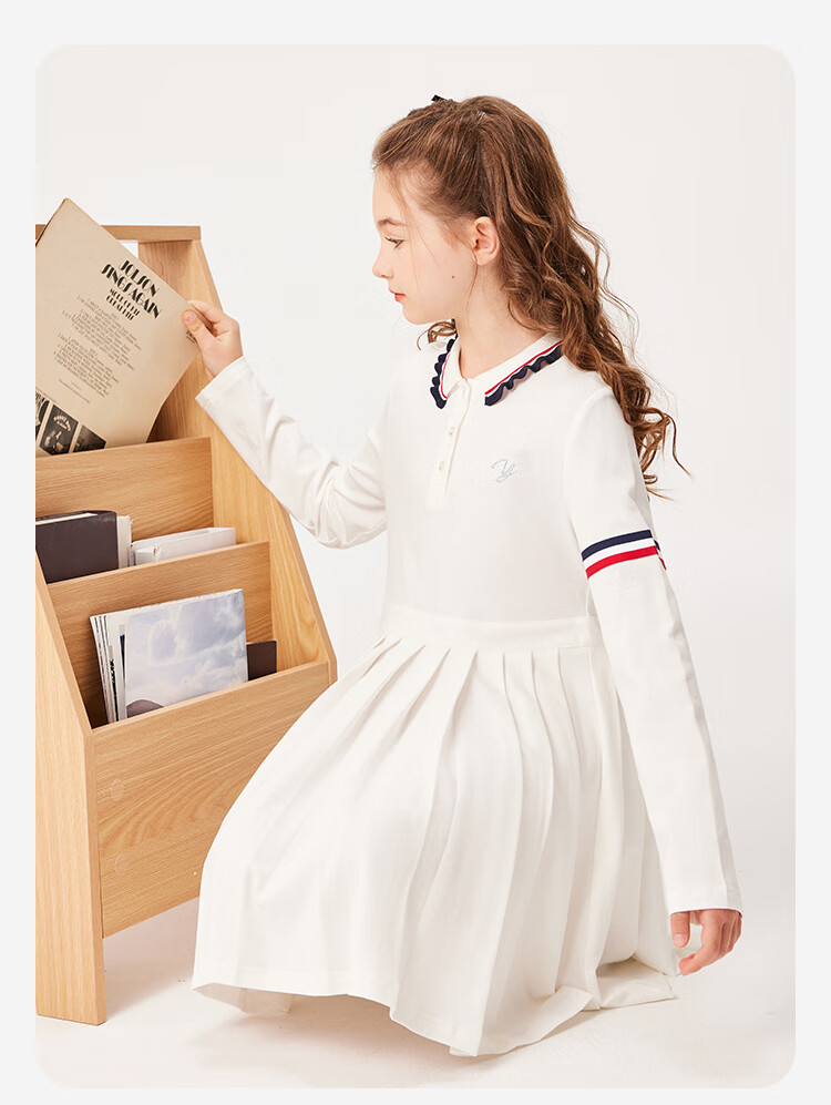 YEEHOO girls' dresses and children's skirts spring preppy style long-sleeved girls' pleated large children's clothing fashionable spring clothes youth weaving white 170
