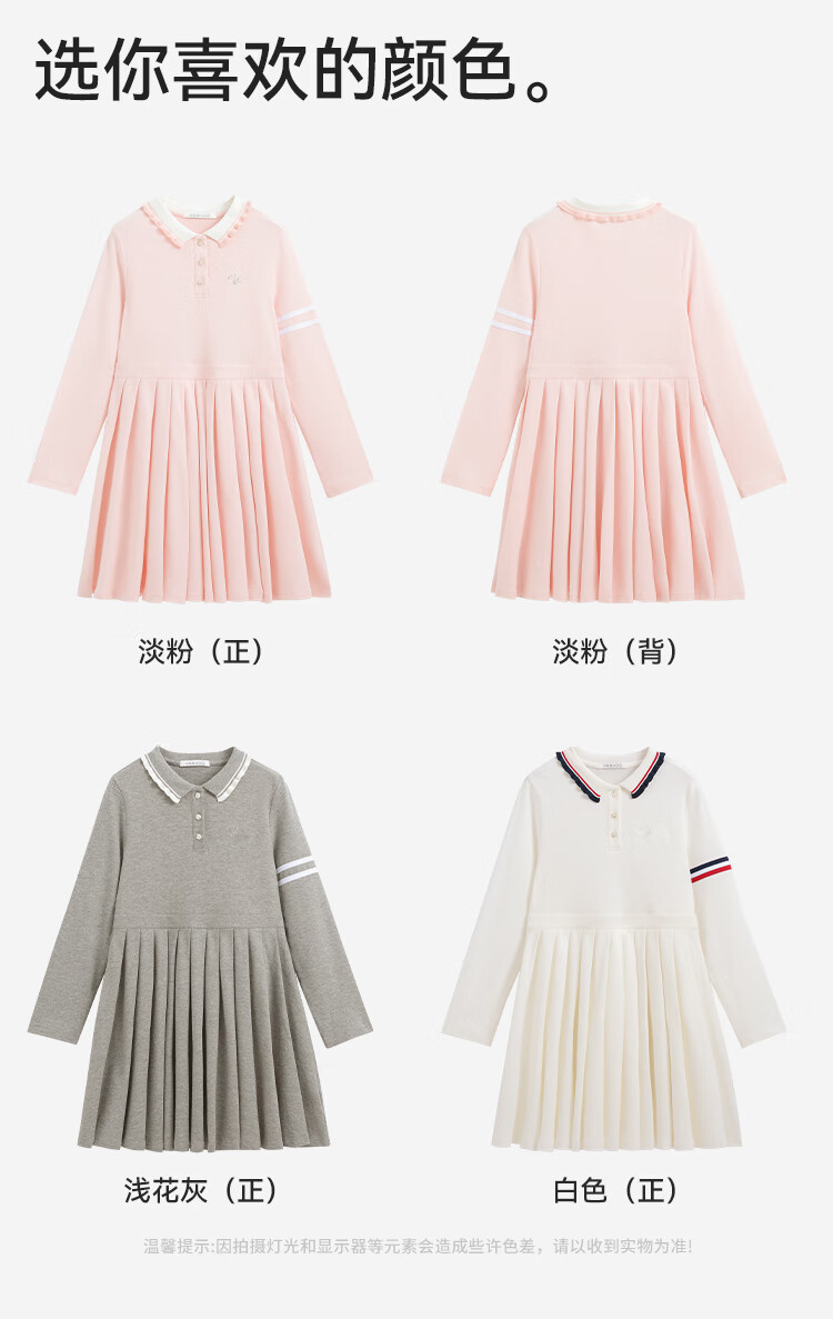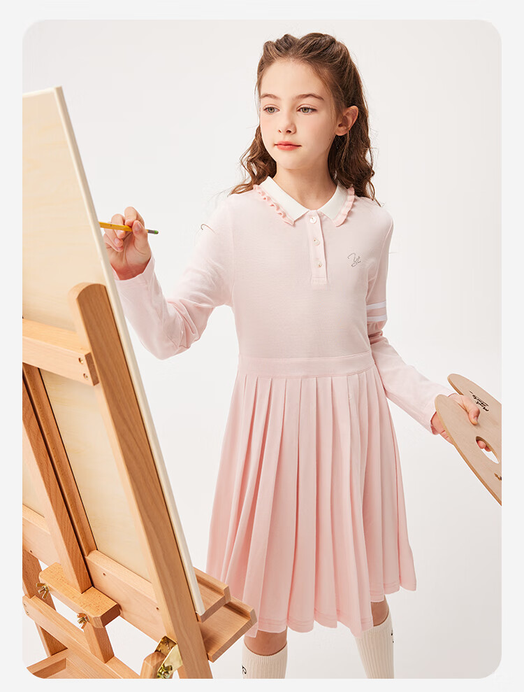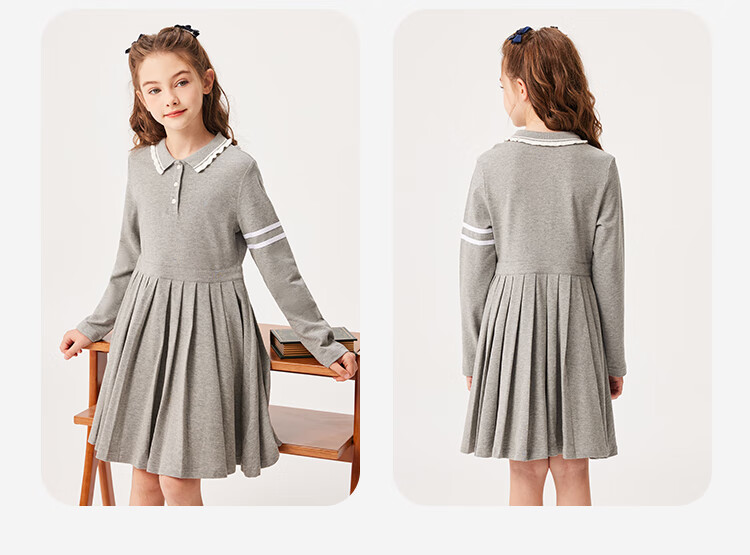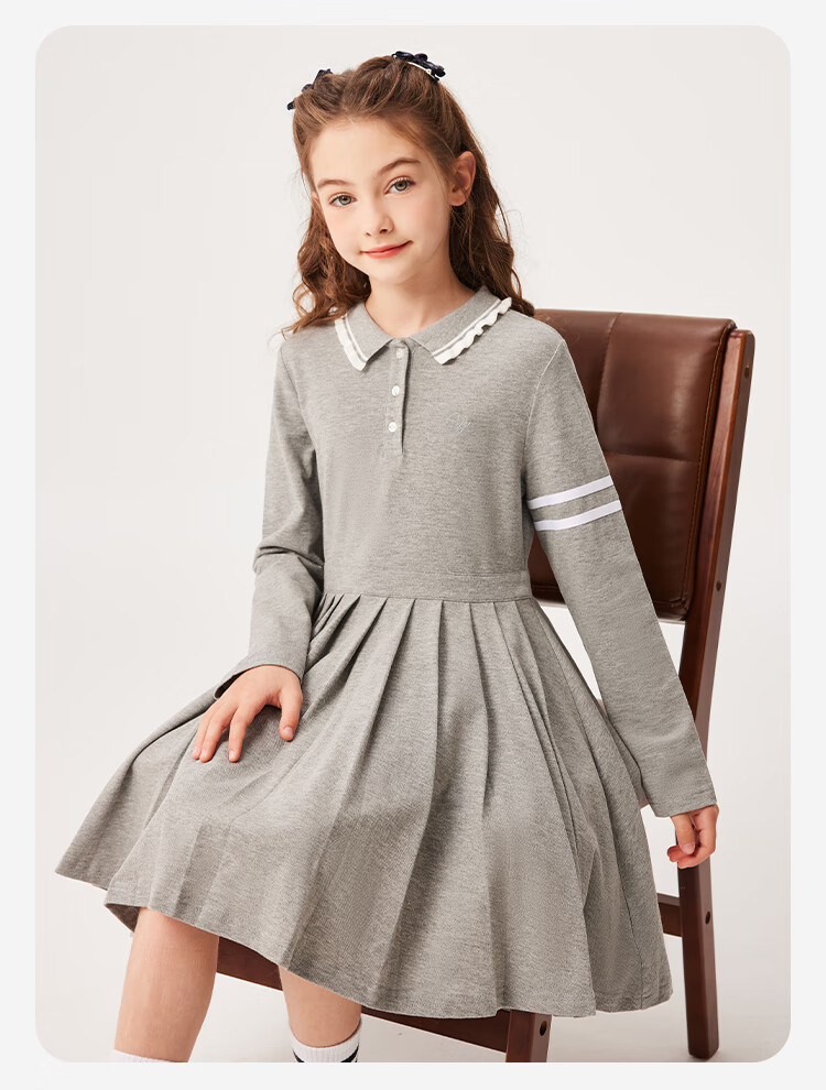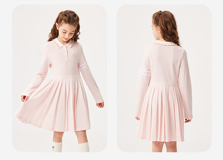 YEEHOO girls' dresses and children's skirts spring preppy style long-sleeved girls' pleated large children's clothing fashionable spring clothes youth weaving white 170
