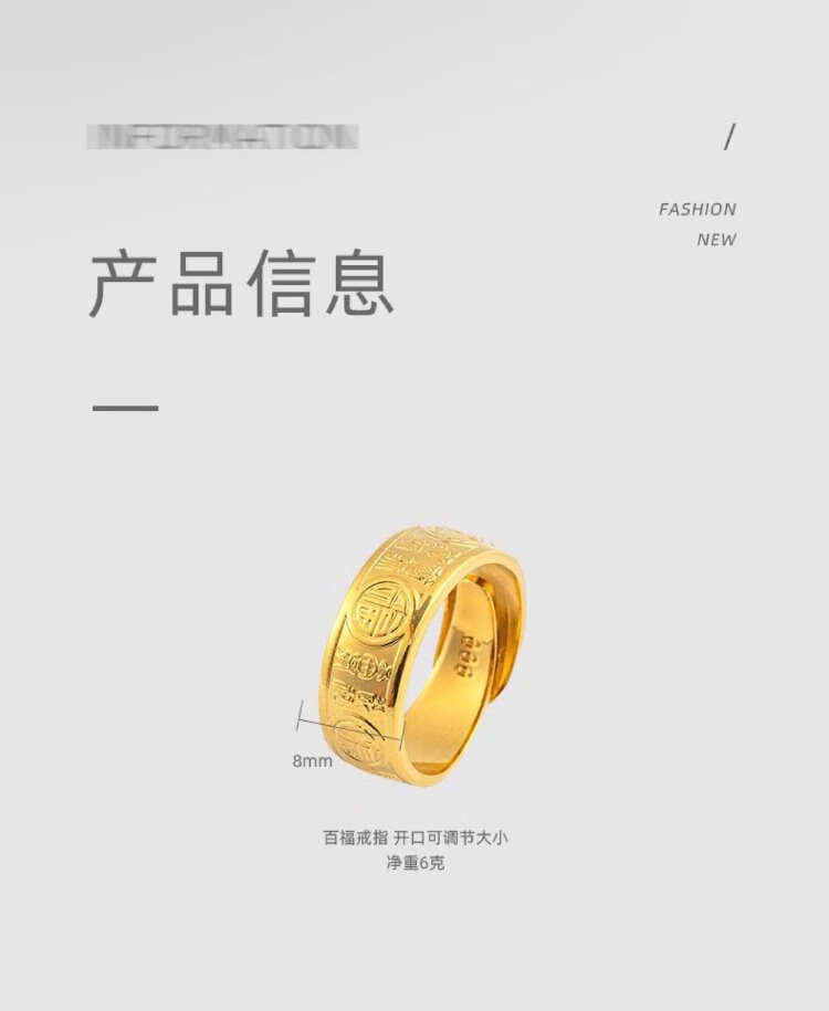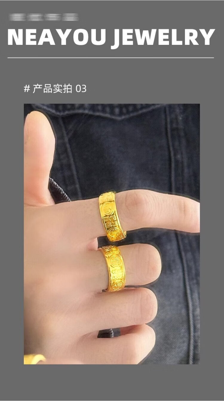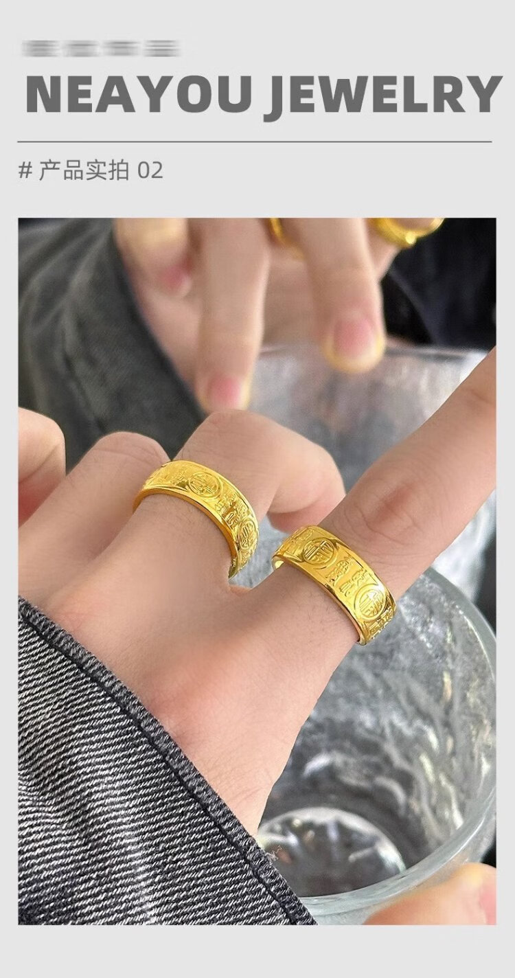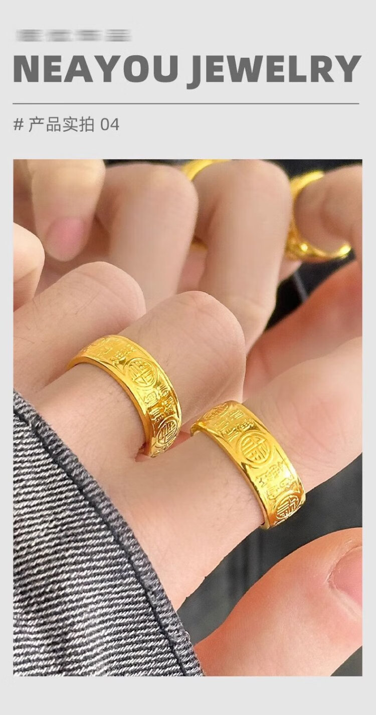 Oein glossy Pfaff live ring men and women same style wide version ring Vietnamese sand gold simulation gold solid non-fading glossy Pfaff live ring