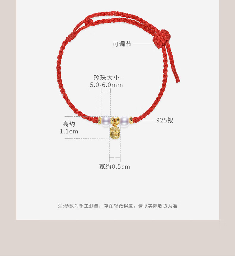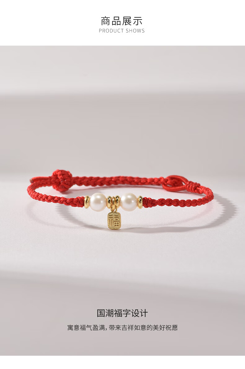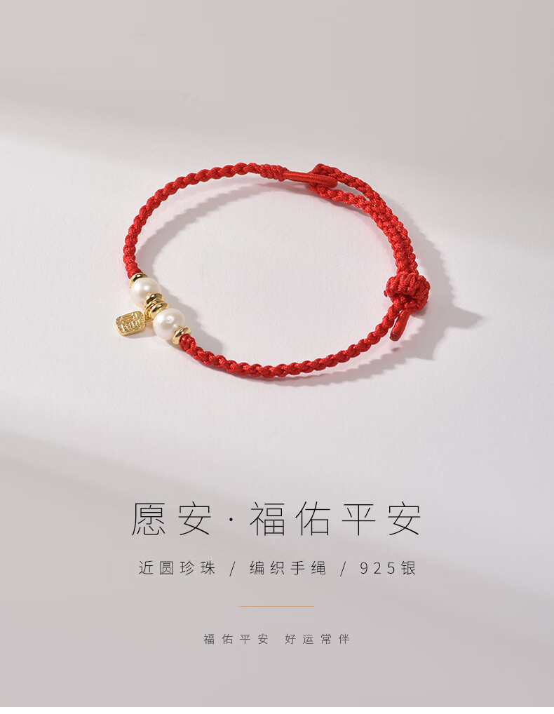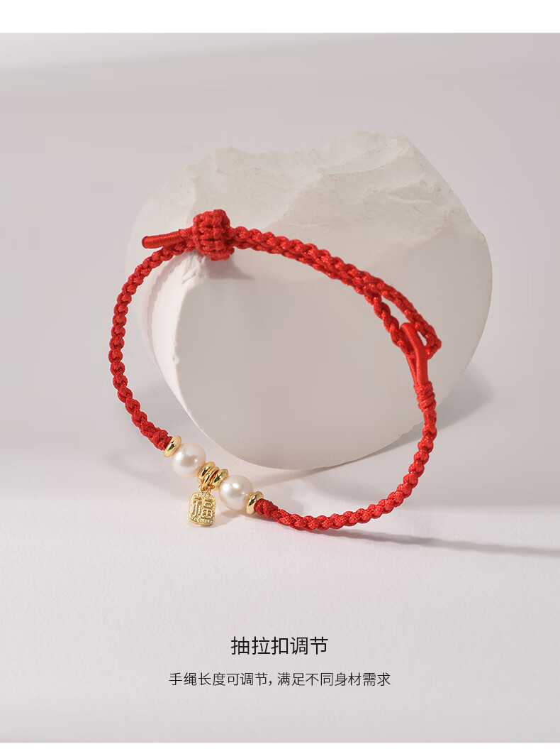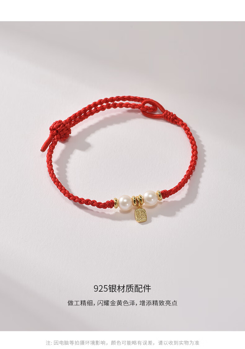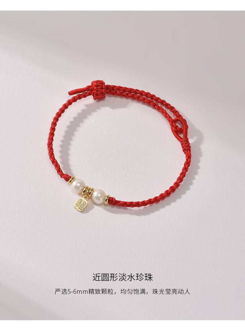 Jingrun Pearl Bracelet Yuan'an 925 Silver Freshwater Pearl Bracelet Nearly Round Zodiac Year Red Rope Bracelet Birthday Gift 5.0-6.0mm 23cm/Adjustable