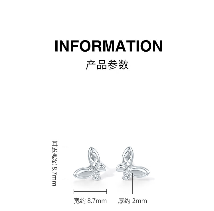 Saturday Fortune (ZLF) pt950 platinum earrings for women, versatile flower butterfly earrings for girlfriend, one pair - 2.23g